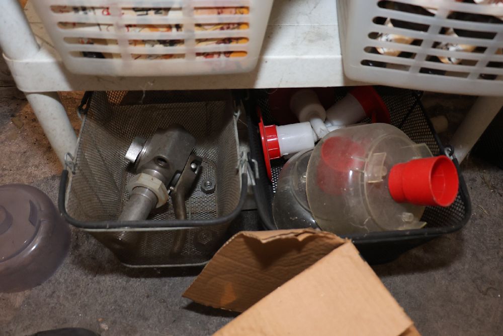 Shelving with misc. equipment (pots, bottles, chem equipment). Includes shelving units. There will be a forklift onsite to assist in loading however the buyer is responsible for the proper and safe removal including bringing the proper tools, equipment and vehicle.