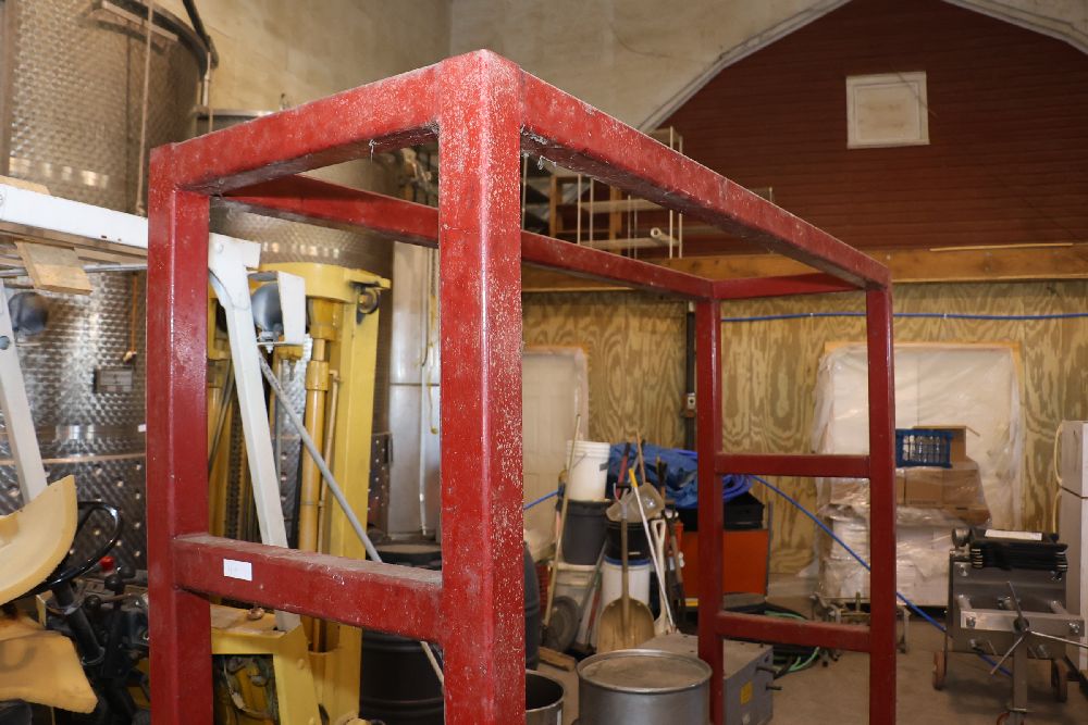 Items include TCM forklift; VE. AR.T fiberglass fermentation cellar; stainless steel storage tank; Defranceschi 39051 Bronzolo cooling tank; Landa VHW3-700 commercial pressure washer; stainless steel Spadoni OMESS plate & frame filter press; Surge "Kube Kooler" sanitary heat exchanger; Europress crusher/destemmer; stainless steel fruit bladder press; 2001 Riempitrice Bottling machine; GAI S.P.A. single-head corker; SS barrels; Mueller tank; Della Toffolla filtration; chest freezers; hanging rack; sanitization bottle trees; spools of trellis wire; candelabra/cafe table/patio furniture; plastic 55 gal. barrels; 4" tubing; shelving; Cambridge pallet scale; empty wine bottles; First pressing table & more. Items are located in Red hook, NY.