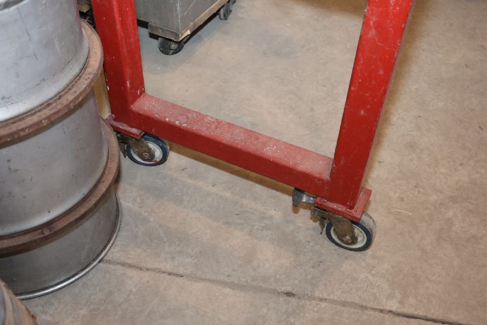 Hanging rack on wheels approx. 7.5' x 28" There will be a forklift onsite to assist in loading however the buyer is responsible for the proper and safe removal including bringing the proper tools, equipment and vehicle.