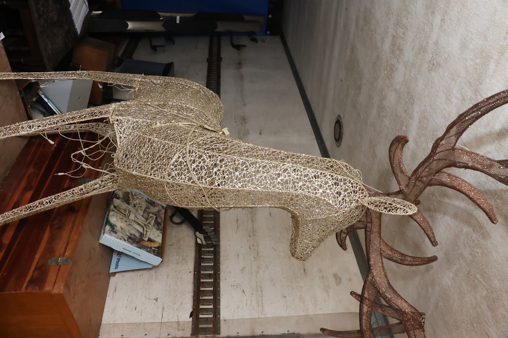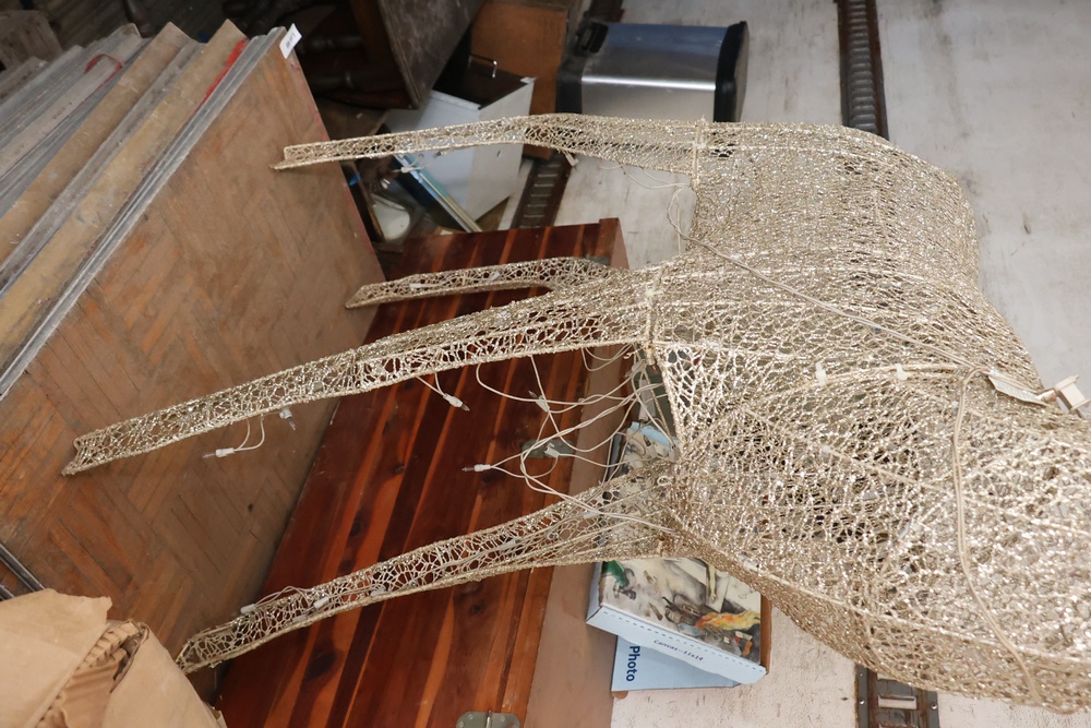 Items include 2009 Cadillac Escalade; Tennant ATLV 4300 ride-on outdoor sweeper; Whirlpool freestanding gas range; decorative cast iron gas stove; ornate vintage table lamps; polished stainless steel truck side steps (nerf bars); fire-starting supplies; Boekel laboratory oven (Model 139000), assorted waterproof first aid kits, an Allen + Roth wall sconce light fixture, Westinghouse 52" reversible ceiling fan blade set; wood dance floor panels; 10" polisher/buffer, bench top pro sander, Sears Craftsman circular saw, chain saw, ladder jacks, multiple Nelson oscillating sprinklers; Bachmann's Big Hauler radio control train set; china, steins, movie reels, decanter cars; Collection of Harbour Lights village scenes & more. Items are located in Highland, NY.