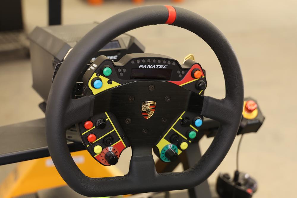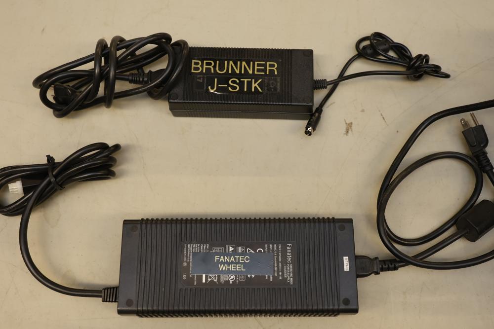 Next Level Racing GTTrack Racing Simulator featuring a GTTrack seat, Fanatec ClubSport Pedals V3 Inverted, ClubSport Steering Wheel F1, and accessories. Includes Brunner CLS-E Rudder, CLS-E Joystick, and CLS-E Yoke with electronic controls and specified power ratings. Comes with a variety of additional cables and mounting hardware for full setup. Pickup only.