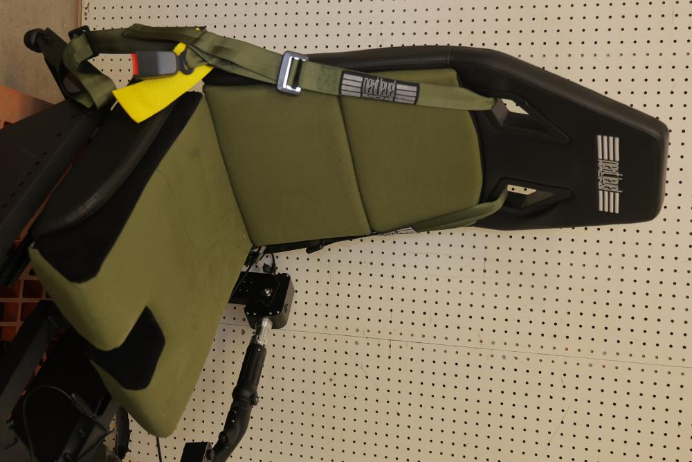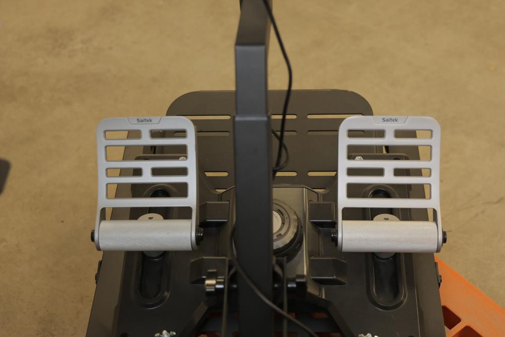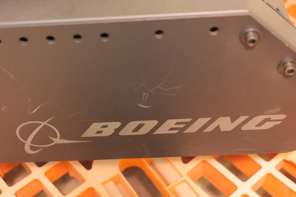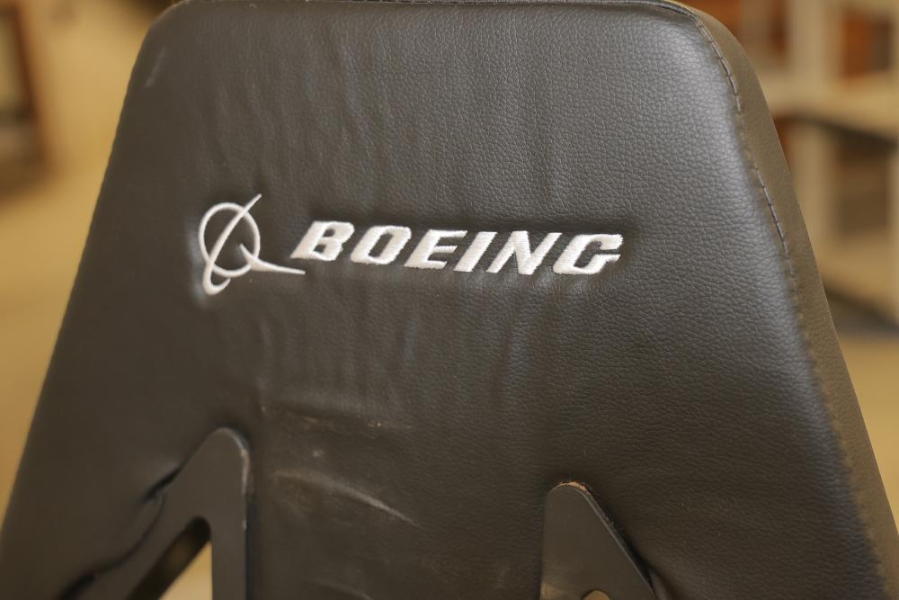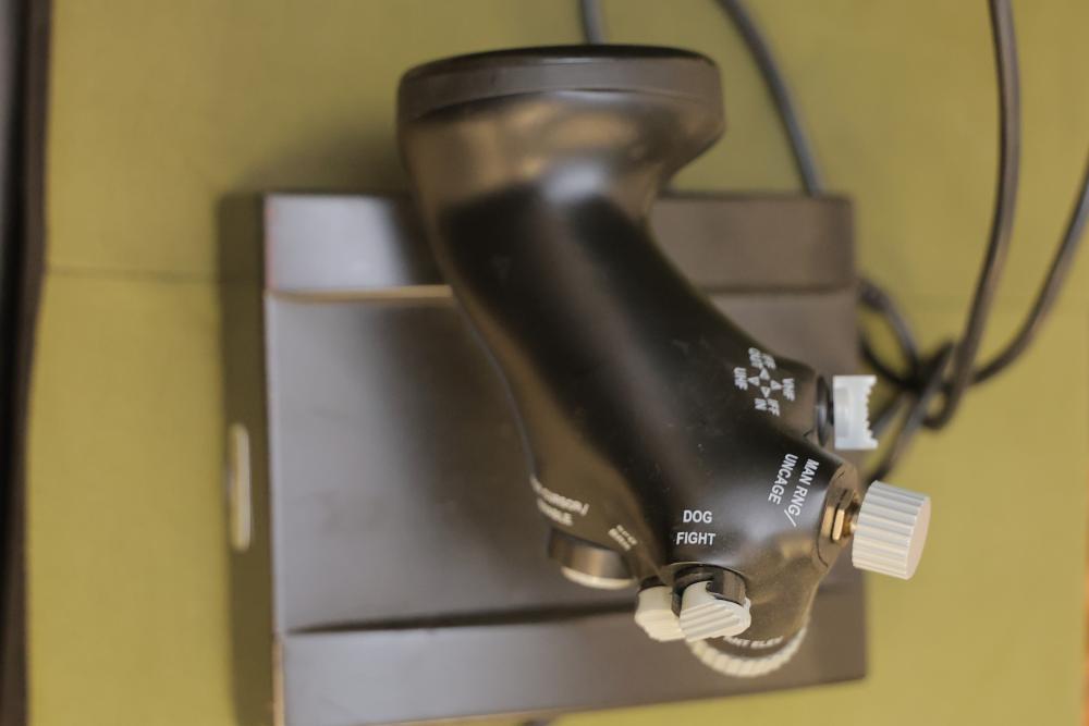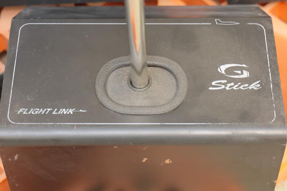 Boeing-themed flight simulator setup includes a detailed cockpit chair, manuals, Saitek rudder pedals, Thrustmaster throttle quadrant, Flight Link G-1 hardware, and Virpil USB joystick for PC. Includes cables, additional manual switches, and accessories for aviation simulation. Condition shows signs of prior use. Pickup only.