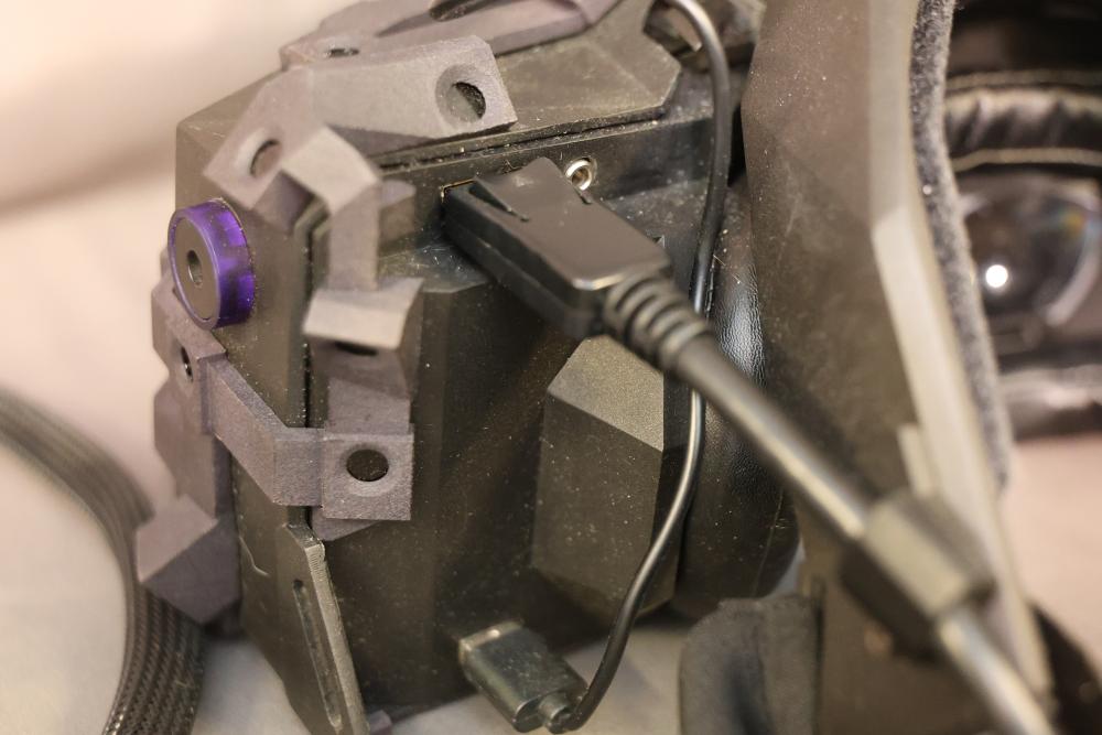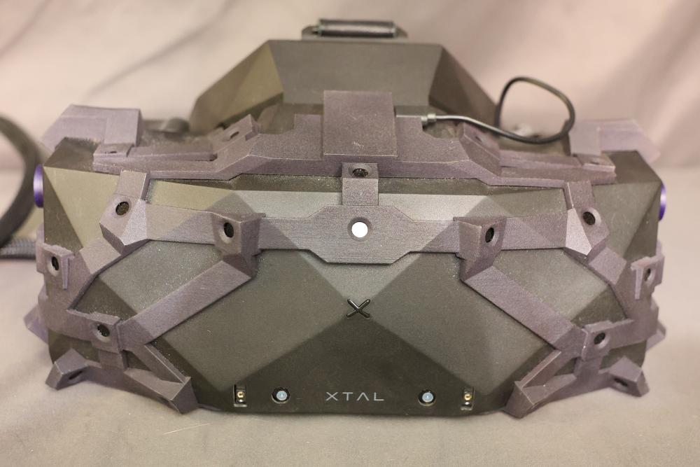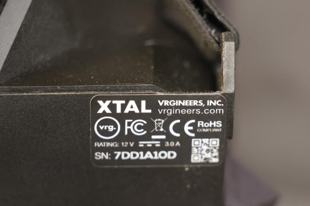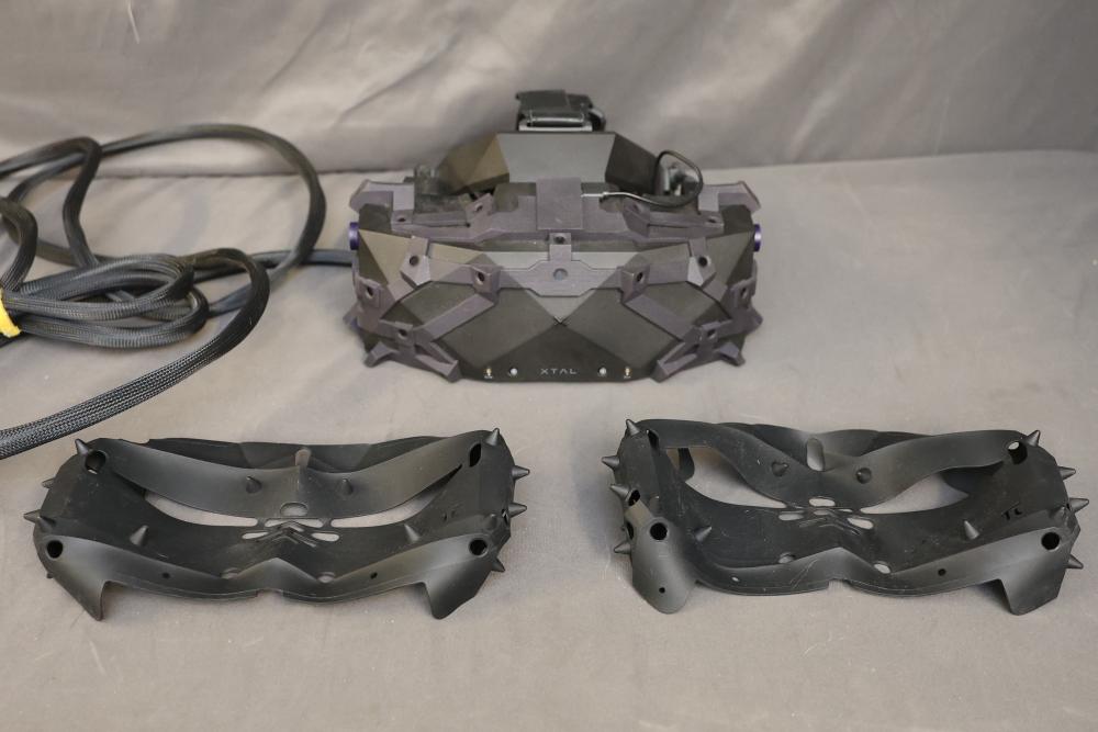 XTAL virtual reality headset by VRgineers, Inc., including original cabling, power adapter, and two additional rubberized faceplates. The headset features an adjustable head strap and built-in lenses. The unit shows no obvious signs of damage. Untested and sold as-is. Pickup only.