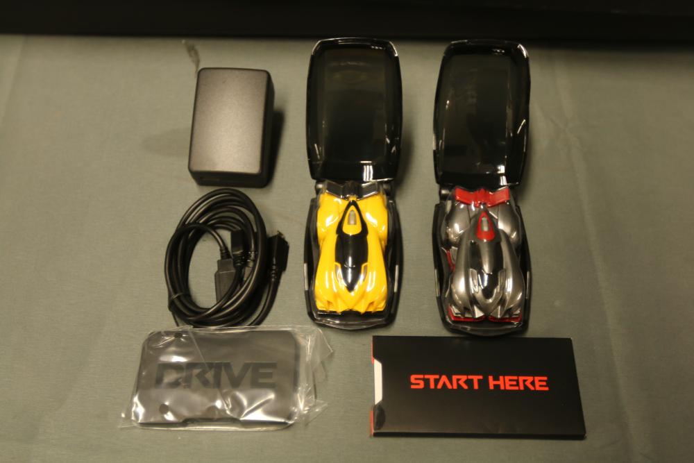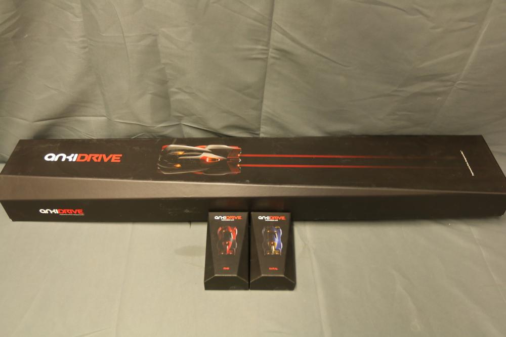 Anki Drive Starter Kit featuring a smart racing system including connected cars and accessories. Includes the original starter set with additional expansion cars named Katal (blue) and Rho (red). Components appear to include multiple cars, a track, charging equipment, and related materials. Pickup only.