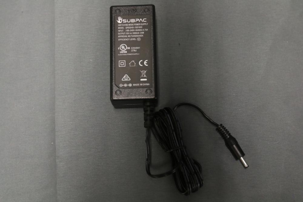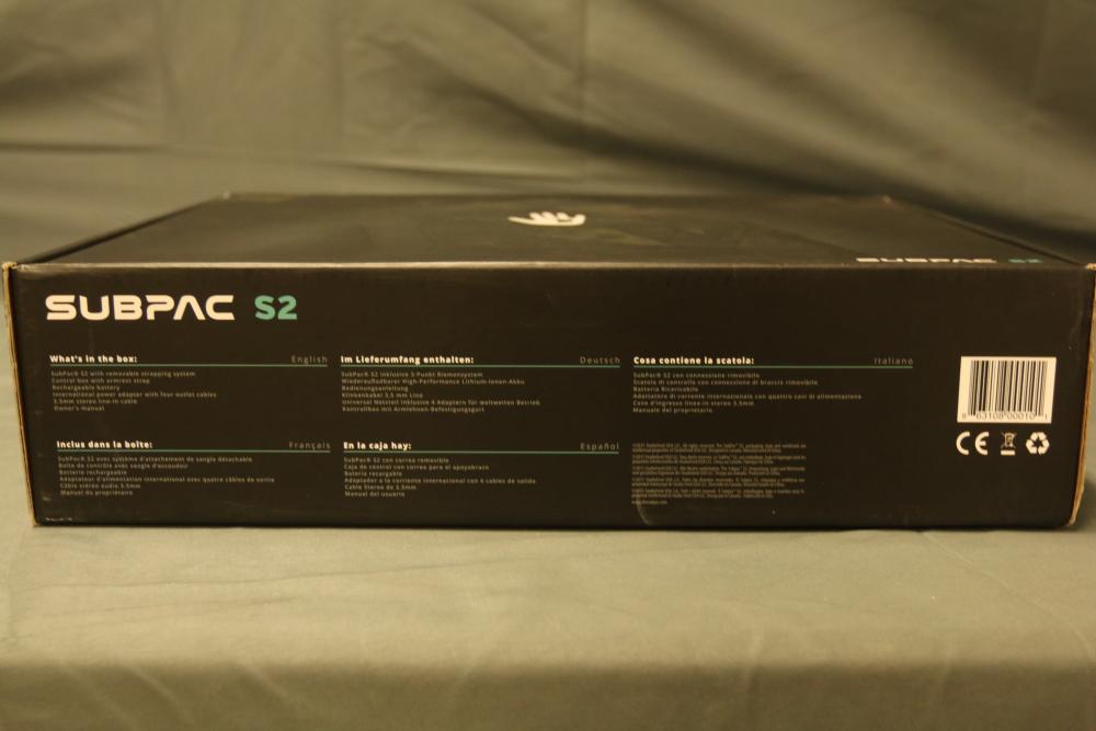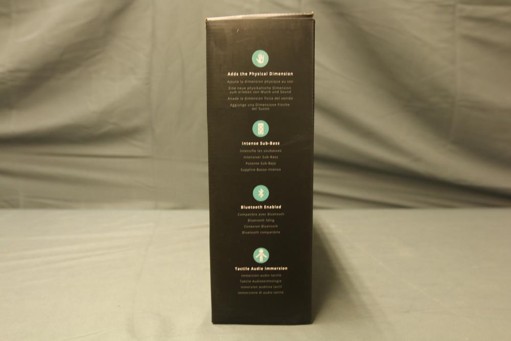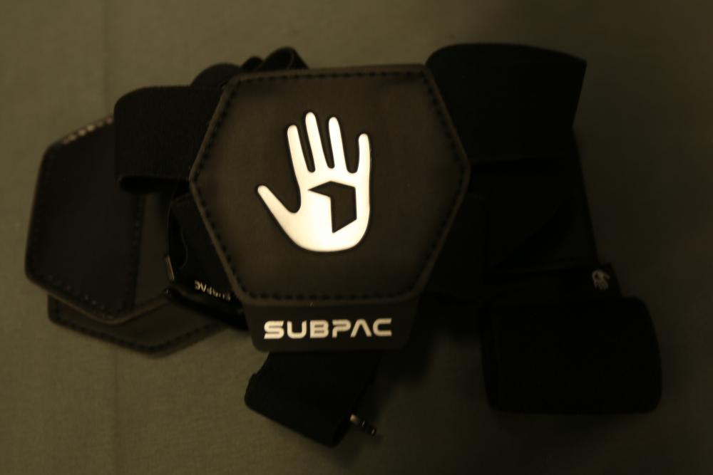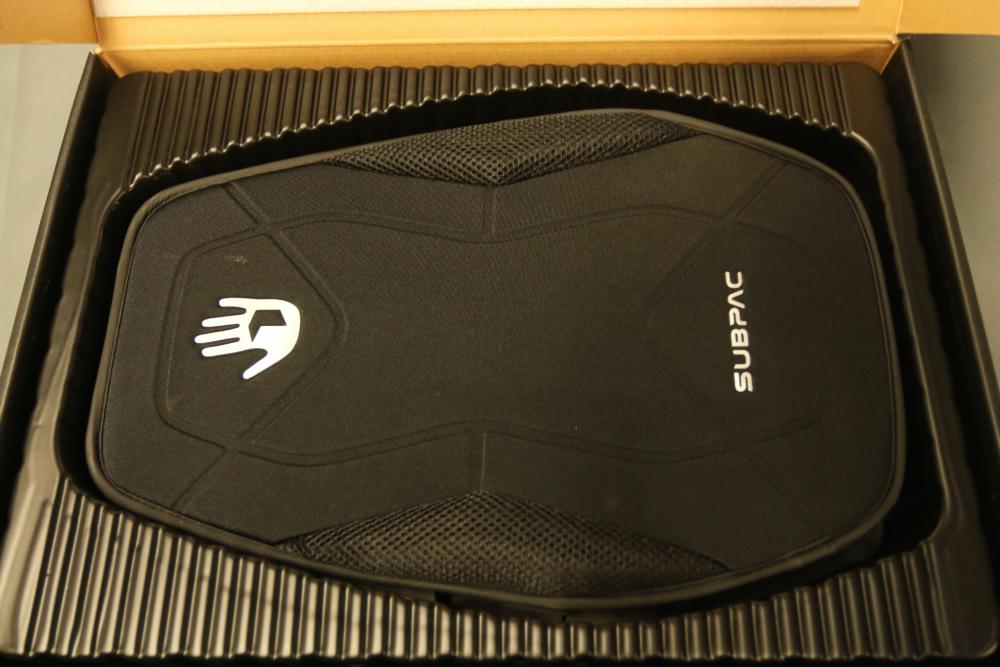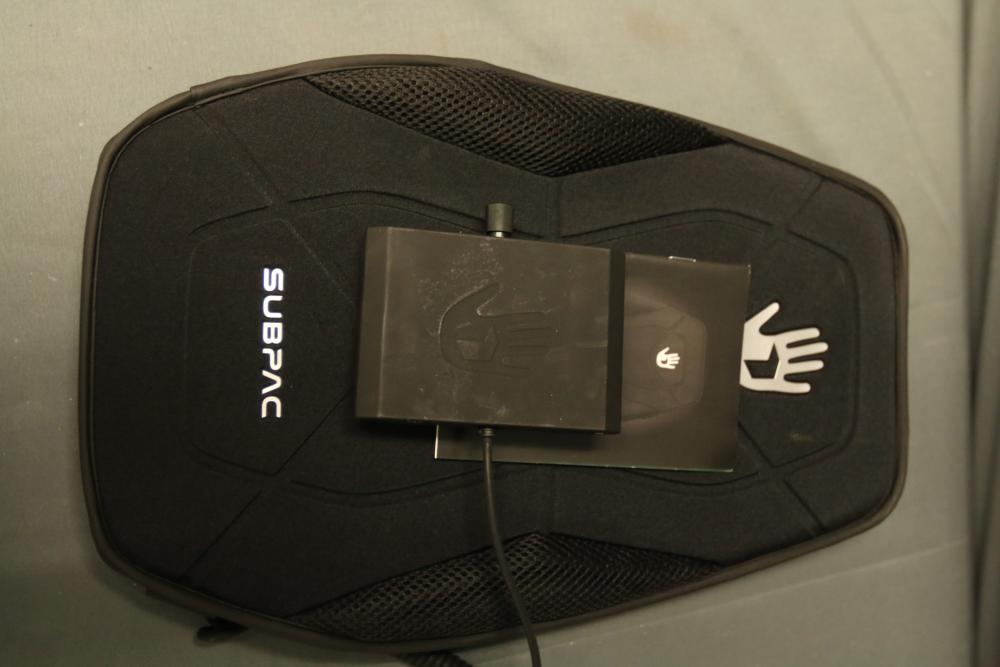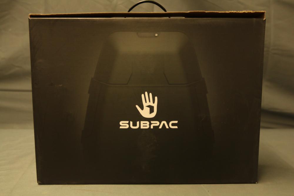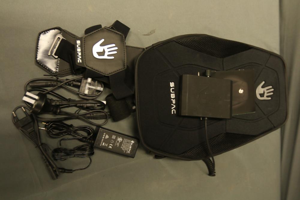 SubPac S2 tactile audio system with original packaging, harness, power supply, and various accessory cables. Includes components for setup and use. Designed for immersive low-frequency audio experiences. Pickup only.