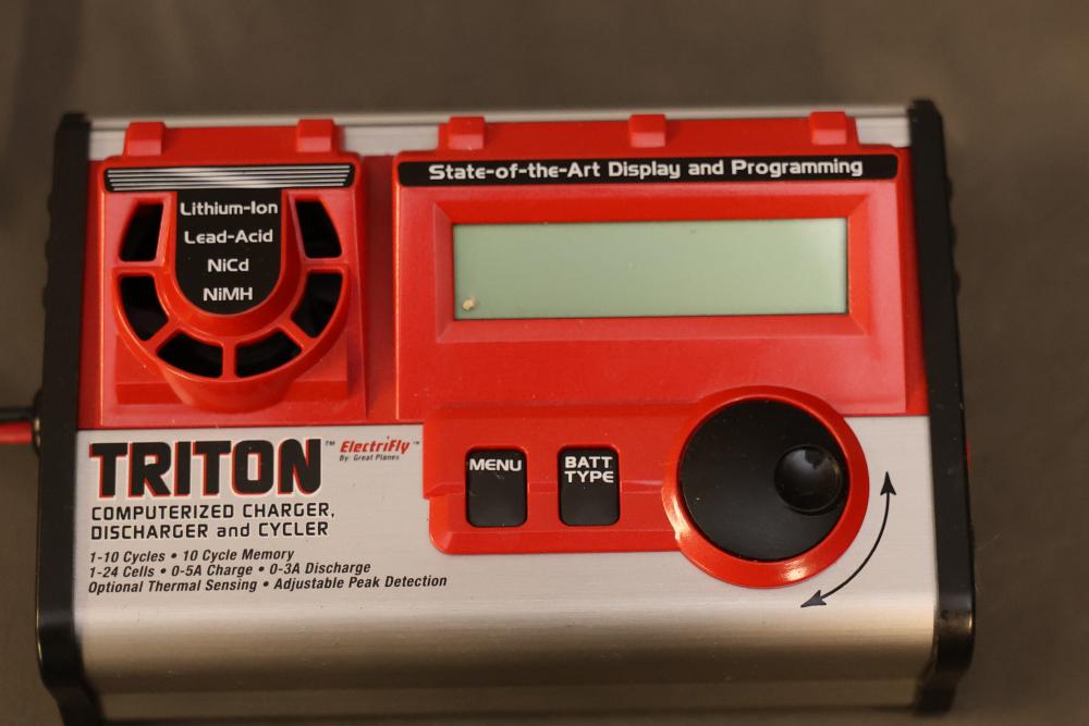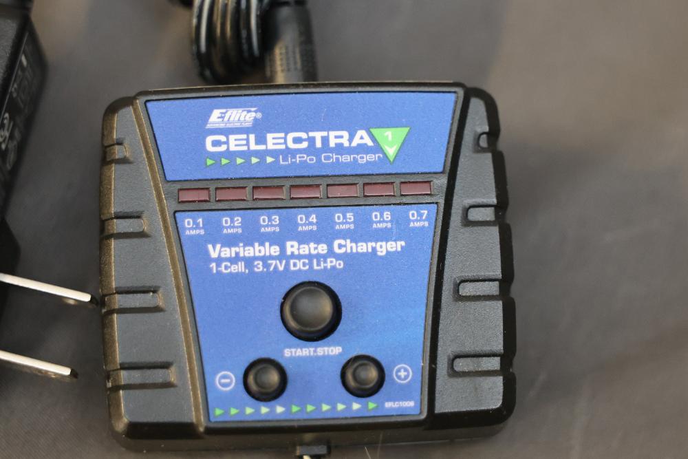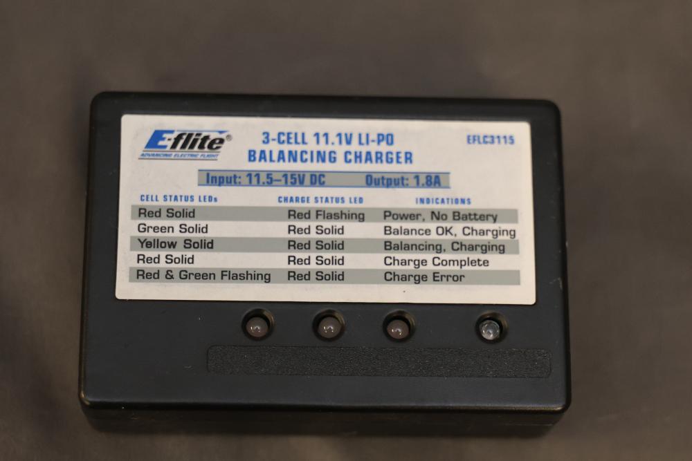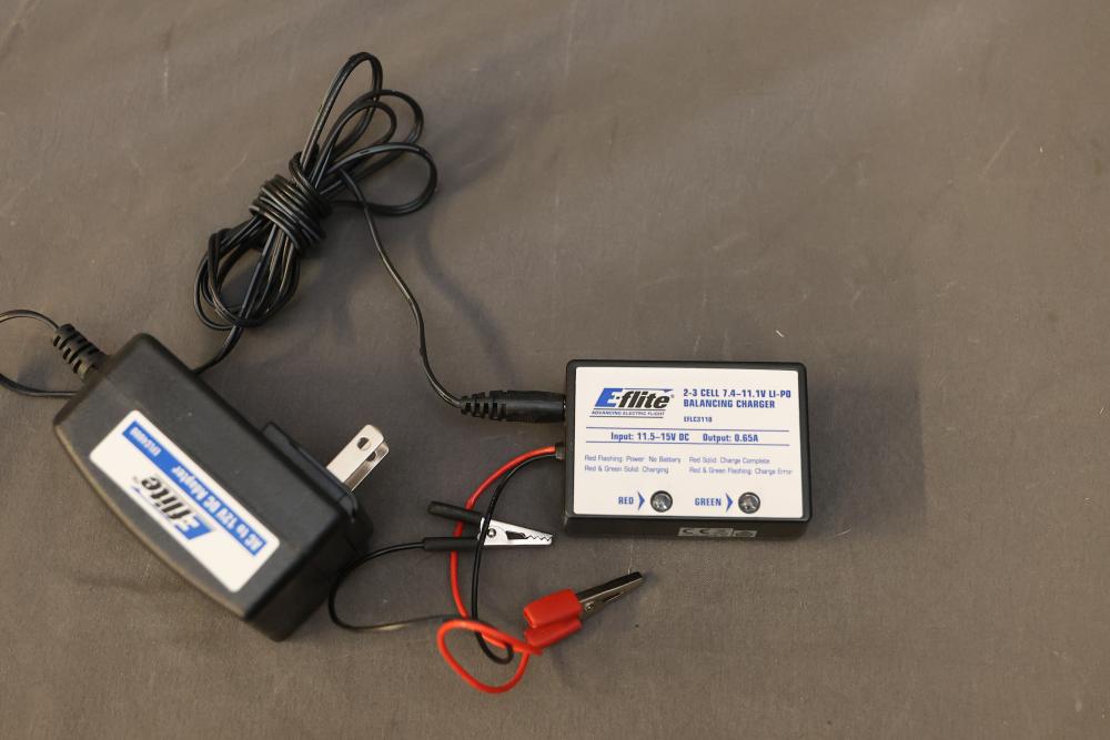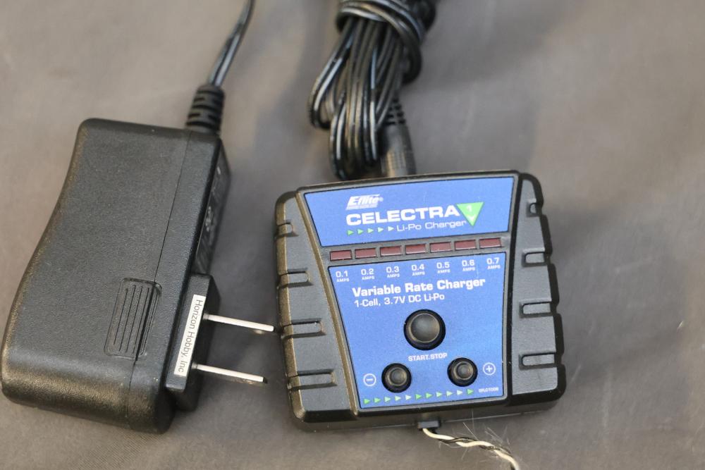Multiple electronic components, chargers, and accessories. Items include Eflite balancing chargers, variable rate chargers, brushless motors by Eflite (Park 250, Park 400, Park 480), a Triton computerized charger, NiMH and LiPo batteries, wiring kits, an ISolderStore gyroscope soldering kit, and a 10-amp pro brushless ESC. Pickup only.