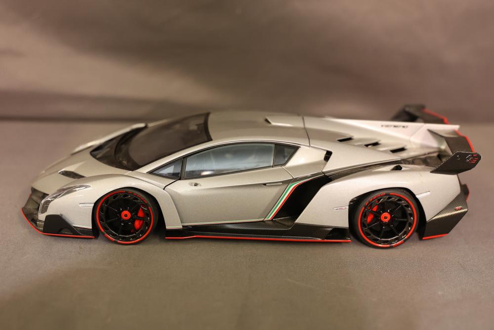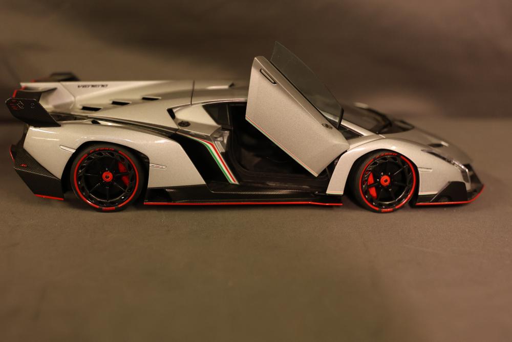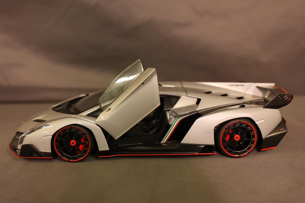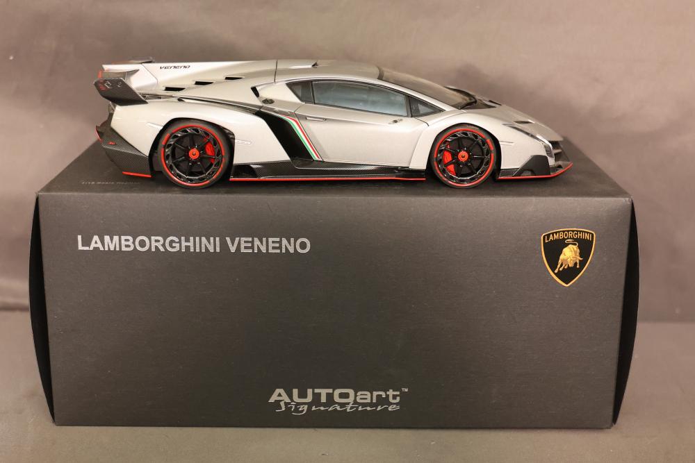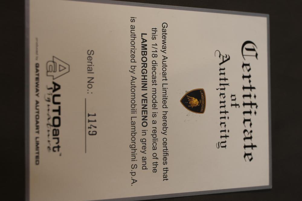 AUTOart Lamborghini Veneno 1:18 diecast model in grey with detailed interior and engine components. Includes original box, serial number 1149, and Certificate of Authenticity from Gateway Autoart Limited. Pickup only.
