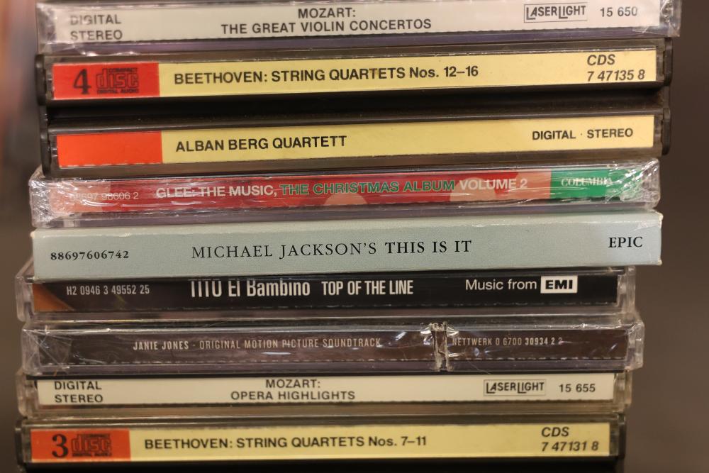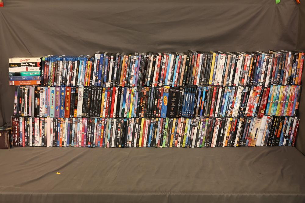 Comprehensive assortment of DVDs, Blu-rays, and CDs in original cases. Includes a variety of genres, titles, and formats, with some Blu-rays in 3D. The collection features movies, series, animation, music albums, and classical compositions. All items are sold as is. Pickup only.