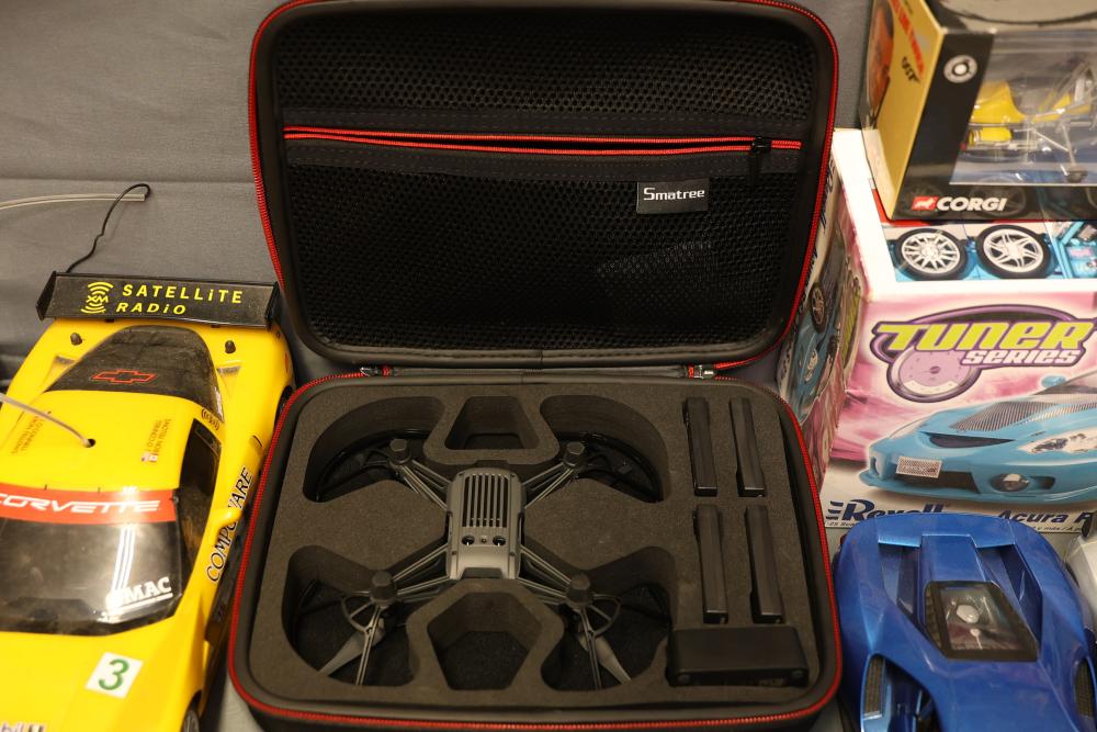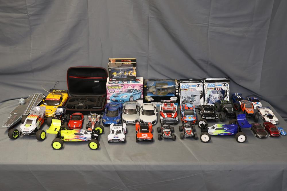 Includes multiple diecast cars, model kits, RC cars, and drones. Includes notable items such as a Hyundai rally car, Corgi 007 gyrocopter, Tello drone in case, Revell Acura model kit, and various others. Pickup only.