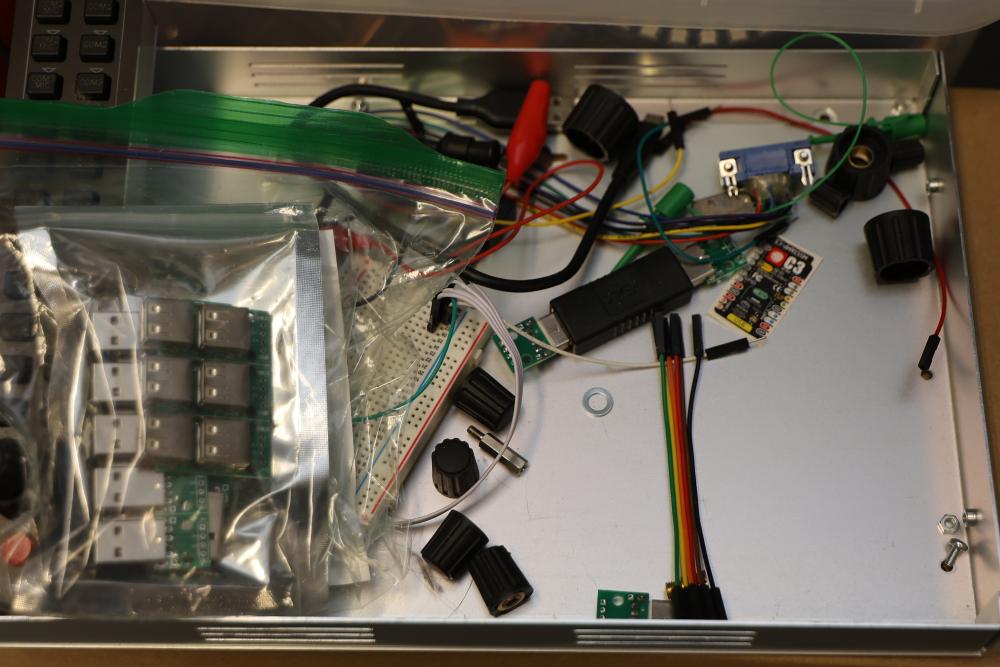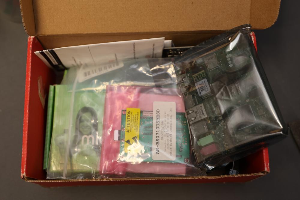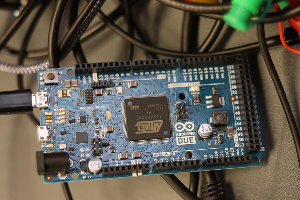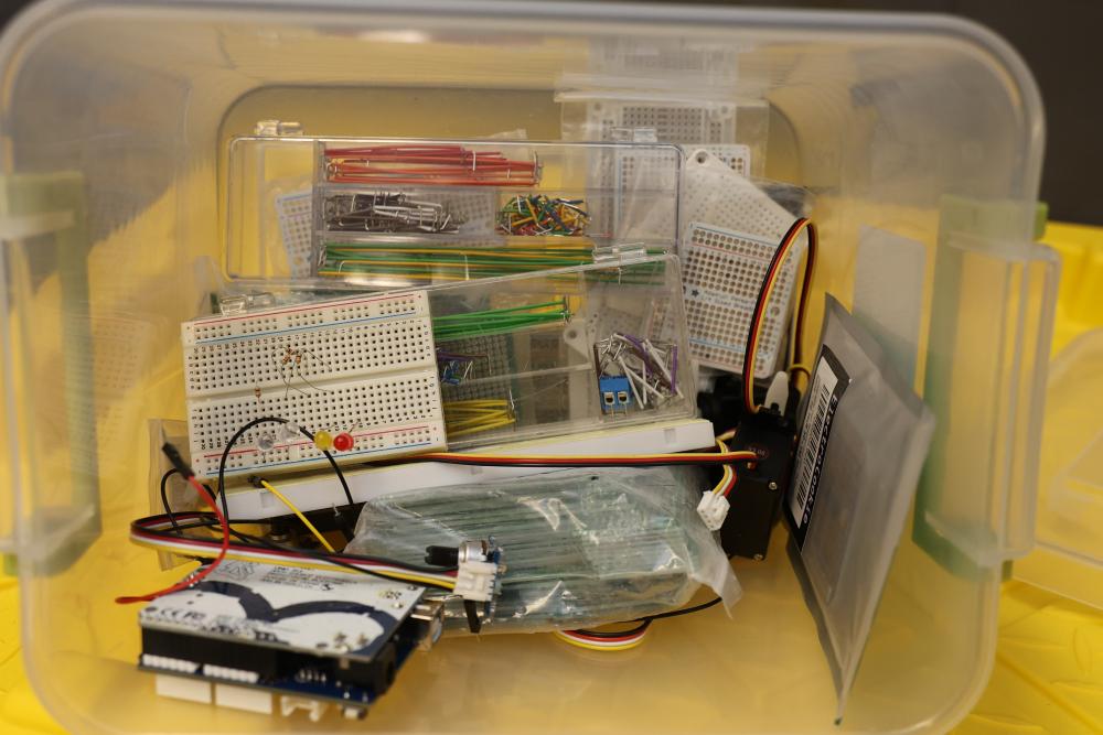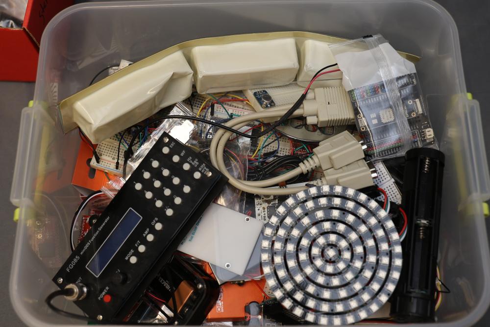 Electronics and development components including Arduino boards, Raspberry Pi boards, multiple prototyping boards, wiring, and accessories. Includes boxed components, PCBs, and controllers for various projects. Pickup only.