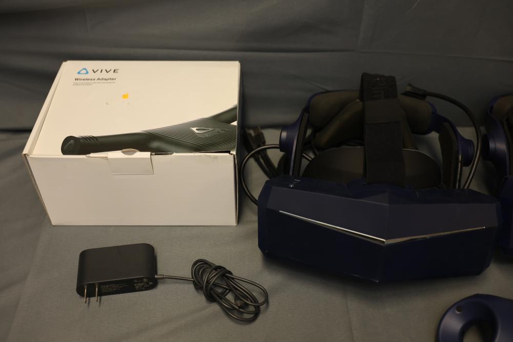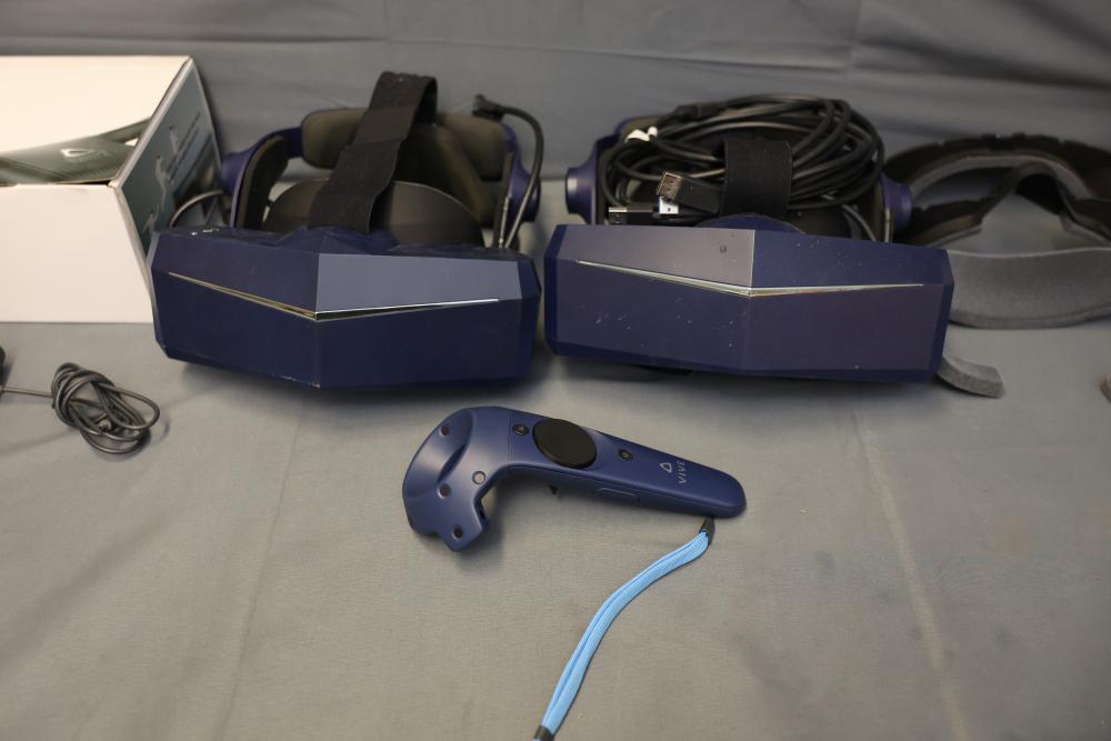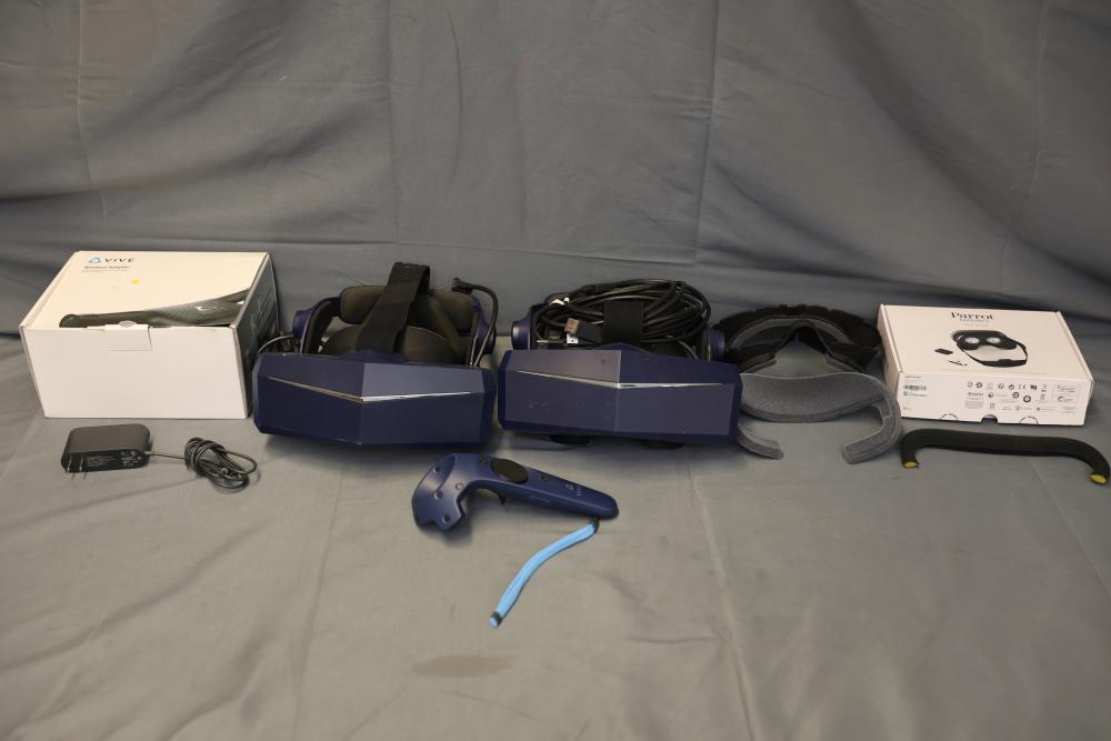 Bundle includes two virtual reality headsets with related accessories, including a controller, power adapter, cables, and additional head straps. Items appear to come in original packaging. Compatible with various VR systems. Pickup only.