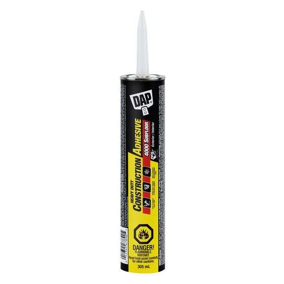 Tan 305ml Construction Adhesive 4000 Subfloor. By DAP, Adhesive Formulated for Subfloor and Deck Installation. Prevents Floor Squeaks and Improves the Structural Performance. 12/Box Grade: A Weight: X. Sold by: Tube. Sold as: Price x Quantity.