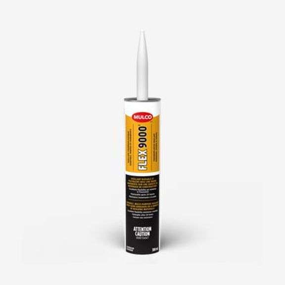 White 10oz Thermoplastic Sealant Exterior. By Mulco, Flex 9000, Instant Resistance to Rain, Good Adhesion to Concrete, Masonry, Painted, Steel,Glass,Fiberglass. Paintable After 24 Hours. 12/Box Grade: A Weight: X. Sold by: Tube. Sold as: Price x Quantity.
