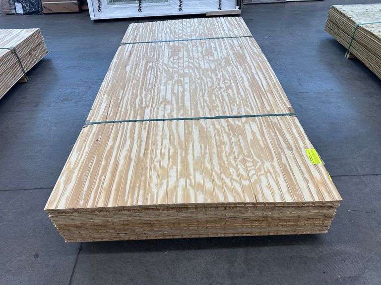 Southern Yellow Pine Plywood Siding 3/8"x48"x96" 1.6" OC. By Roy O Martin, Shiplap, Double Beaded, Grade: Shop *Condition Notes: Broken Tabs, Please See Photos* Weight: 875. Sold by: Sheet. Sold as: Price x Quantity.