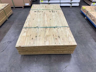 Pressure Treated Plywood 5/8"x48"x96". Grade: Shop *Condition Notes: Delaminated, Unsquare, Please See Photos* Weight: 1400. Sold by: Sheet. Sold as: Price x Quantity.