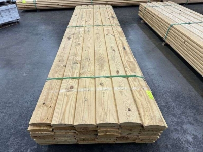 Southern Yellow Pine D-Log Siding 2"x8"x12'. Actual Dimensions 1 1/2"x6 1/2"x12', Grade: 1. *Condition Note: Minor Fork Damage, Please See Photos.* Weight: 1240. Sold by: Linear Foot. Sold as: Price x Quantity.