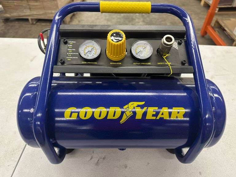 2 Gallon Oil Free Air Compressor. By Good Year, HP: 0.5, 1.2 SCFM @ 40 PSI, 0.8 SCFM @ 90 PSI, 58 dBa Quiet, Grade: New Weight: 35. Sold by: Case. Sold as: Price x Quantity.