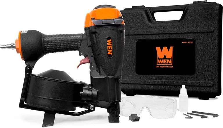 Wen Pneumatic Coil Roofing Nailer. Uses 11 Guage 3/4"-1 3/4" Roofing Nails, 120 Nail Capacity, Uses Pneumatic Operating Pressure From 70 PSI to 120 PSI, Includes a Blow Mold Carrying Case, Oil, and Hex Wrenches Weight: 20. Sold by: Piece. Sold as: Price x Quantity.