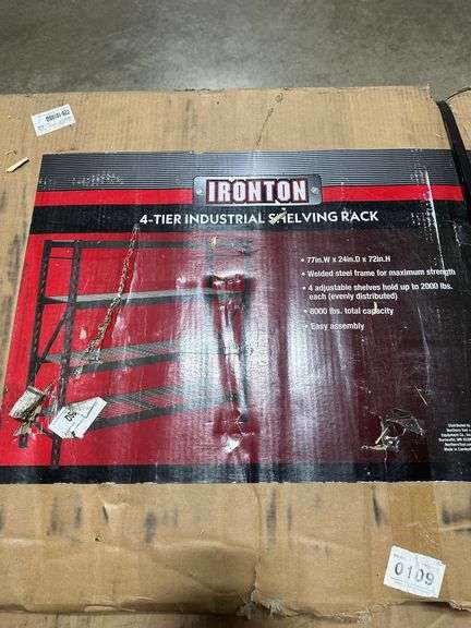 Ironton 4-Tier Storage Shelving. Ironton 4-Tier Storage Shelving offers a cost-effective and versatile storage solution that maximizes vertical space and increases organization. With a high weight capacity, supporting up to 2,000 lbs. per shelf, it provides reliable storage for bulky and heavy items. Built from industrial-grade steel, it's designed for durability and can withstand tough environments. The adjustable shelves allow customization to fit various item sizes, while the corrosion-resistant finish ensures longevity, even in damp areas. Its easy assembly requires minimal tools, making setup quick and hassle-free. The modern design fits seamlessly into any home, office or industrial space, while providing professional-grade quality trusted for demanding storage needs. Heavy-duty shelving keeps your space organized, enhancing efficiency and safety by securely storing items and reducing clutter. Weight: . Sold by: . Sold as: Price x Quantity.