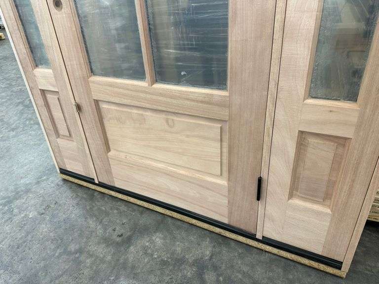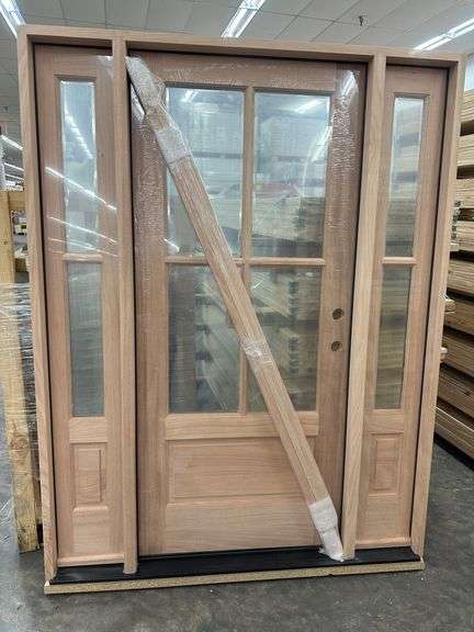 Exterior 4-Lite Mahogany Door 1-3-1 LH. Pre-Hung: 36"x80" Door, 2 12"x80" Sidelites, Sill 5 9/16", Rough Opening: 64 3/4"Wx83 1/4"H, Grade: 1st Weight: x. Sold by: Door. Sold as: Price x Quantity.