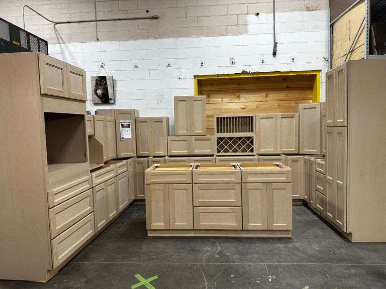 Sonoa Wheat Kitchen Cabinet Set 10'x16'x10'. Ultimate Layout, 30" Walls, By GHI, Designed for superior durability and functionality, these cabinets feature solid hardwood face frames with mortise and tenon construction, reinforced with glue and nails for exceptional stability. Thick multi-ply hardwood plywood tops, bottoms, and end panels are precisely added into the face frame, ensuring a secure and seamless fit. The adjustable shelves, crafted from edge-banded multi-ply hardwood plywood, exceed industry standards, while the sturdy back panels are routed, glued, and nailed for enhanced durability. 6mm fluted metal shelf clips provide secure, adjustable shelving in 2-inch increments. The solid hardwood shaker-style doors are fitted with 110-degree full overlay concealed hinges, featuring soft-closing dampers for smooth, silent operation. Dovetail-constructed drawer boxes, made from solid hardwood with plywood bottoms, are paired with soft-closing undermount full-extension glides, ensuring effortless functionality. Wood base corner brackets and solid hardwood hanging strips further reinforce the structural integrity of these cabinets. Enclosed in each cabinet set will be a Build Sheet which lists the individual cabinets in each set. As the cabinets are palletized each cabinet will be checked off and signed by our staff member to ensure that the set is complete at the time of pick-up. Please keep this Build Sheet on hand because it will be required if there is an issue with your cabinet set. Cabinet issues will not be addressed without this build sheet. Weight: x. Sold by: Set. Sold as: Price x Quantity.