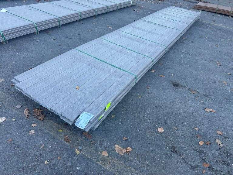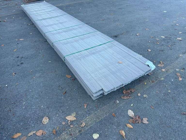 Grey Composite Decking 5/4"x6"x20'. By Fiberon, PVC Cap, Scalloped Bottom, Grooved Edge, Actual Dimensions 1"x5 1/4"x20', Grade: B Weight: 2000. Sold by: Linear Foot. Sold as: Price x Quantity.