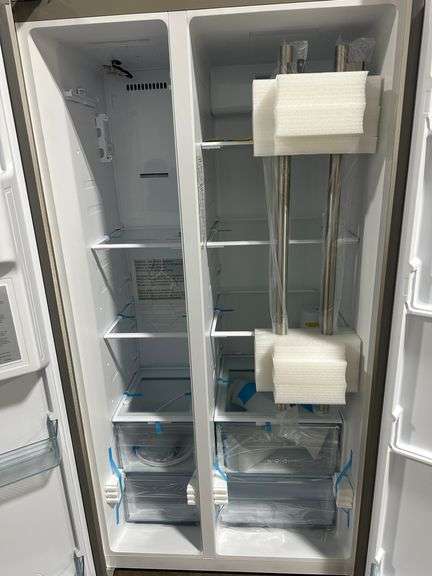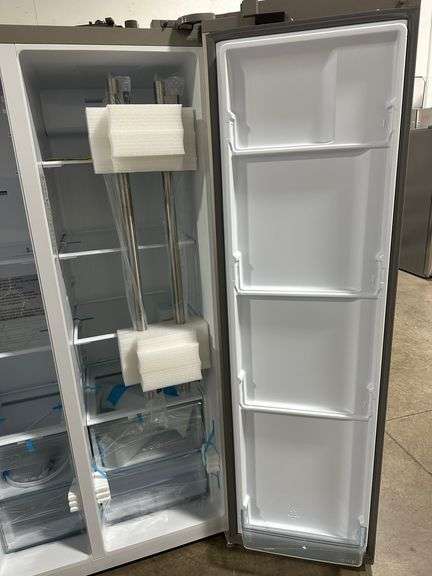 Whirlpool Side-by-Side Refrigerator Freezer Model FFRBI184430SB. This is a Whirlpool side-by-side refrigerator and freezer unit, model FFRBI184430SB. The appliance features a stainless steel finish with an external water and ice dispenser on the freezer door. It has minor cosmetic damages including scuffs on the sides and small dents on the front of the fridge. The refrigerator has been tested and is confirmed to be in working condition. This refrigerator offers modern styling and practical features suitable for everyday kitchen use. Its side-by-side design allows convenient access to both fridge and freezer compartments, ideal for households looking for efficient food storage. This is a liquidated product. The Auction Company makes no express or implied representations or warranties of any kind regarding the Product. Any pre-existing retail, wholesale or manufacturer warranties will not transfer with the sale of this Product unless expressly stated otherwise on this page. The Buyer accepts the Product in as-is condition, with all faults. Weight: . Sold by: Piece. Sold as: Price x Quantity.