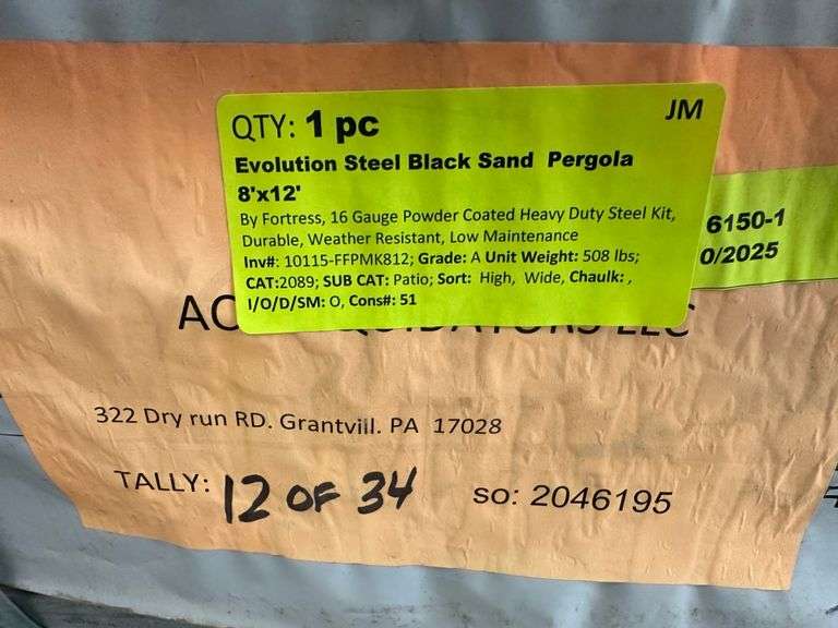 Evolution Steel Black Sand Pergola 8'x12'. By Fortress, 16 Gauge Powder Coated Heavy Duty Steel Kit, Durable, Weather Resistant, Low Maintenance, Grade: A Weight: 508. Sold by: Piece. Sold as: Price x Quantity.