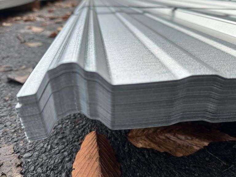Galvalume Metal Panel 3'x16'. 29 Gauge, 50 Pieces, Grade: B. Metal can be labeled as "B Grade" for many reasons. Some may include possible paint imperfections such as; off colors, light or heavy coating, dirt in paint, paint splash or blisters. They may contain steel imperfections such as; creases, wrinkles, wavy edges, dents, or general handling damage. When bidding on Grade B metal panels please don't assume that any two lots are the same. If you want to buy more than one (1) lot and need the same color please call us at 607-865-6951 to have us inspect the lots before you purchase. Weight: 1720. Sold by: Linear Foot. Sold as: Price x Quantity.
