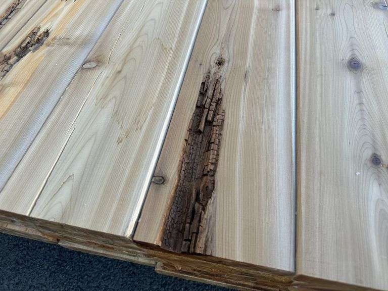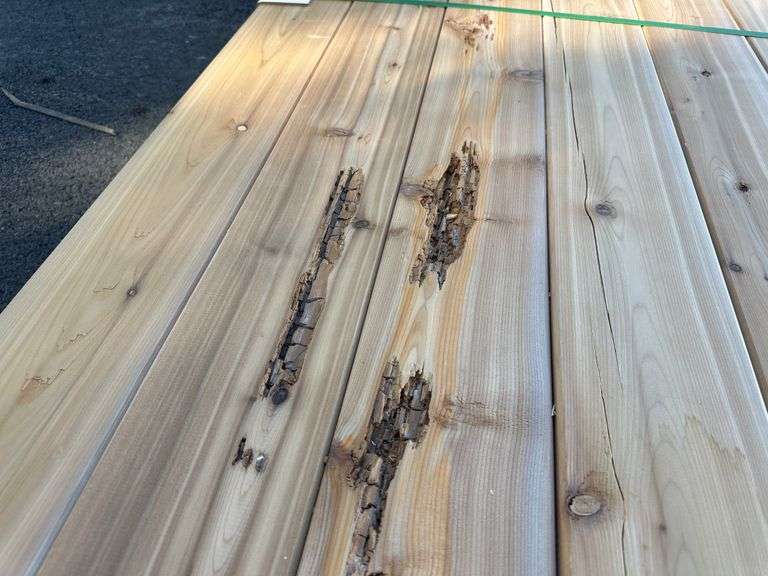 Western Red Cedar Decking 5/4"x6"x10'. S4SEE, Kiln Dried, Actual Dimensions: 1"x5 1/2"x10', 300 Board Foot, Grade: #3 *Condition Note: Splits and Cracks, Punky, Please See Photos* Weight: 720. Sold by: Board. Sold as: Price x Quantity.