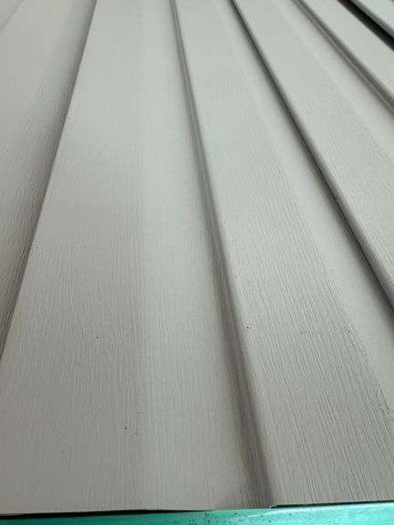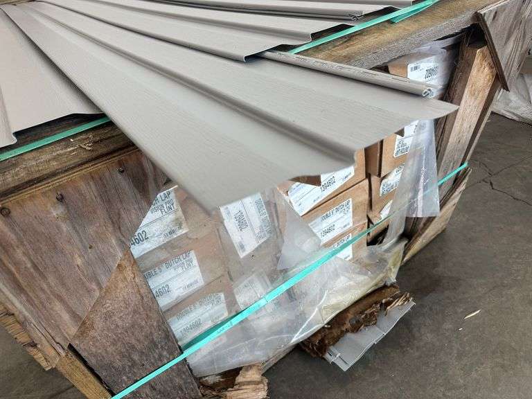Flint D5D Vinyl Siding 12'. Made by Georgia Pacific, Vision Pro Series, Made in U.S.A., 20 Pieces 2 per Square Box, Grade: B *Condition Note: Damaged Crate, Bottoms are falling/wet, SEE PHOTOS* Weight: 1480. Sold by: Square. Sold as: Price x Quantity.