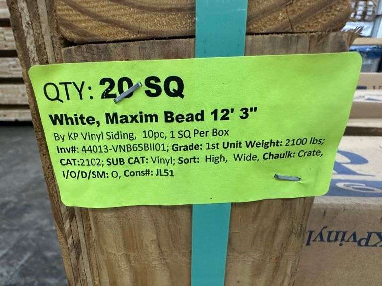 White Maxim Bead Vinyl Siding 12' 3". By: KP Vinyl Siding, 10 Pieces, 1 Square Per Box, Grade: 1st Weight: 2100. Sold by: Square. Sold as: Price x Quantity.