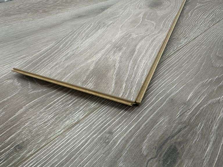 Stony Plain Oak Light Taupe Laminate Wood Plank 14MMx8"x51". By Lifeproof, Waterproof, Beveled Edge, Actual Dimensions: 12mm with 2mm Attached Pad, 14MMx7.56"x50.63" Grade: B Weight: 1510. Sold by: Square Foot. Sold as: Price x Quantity.