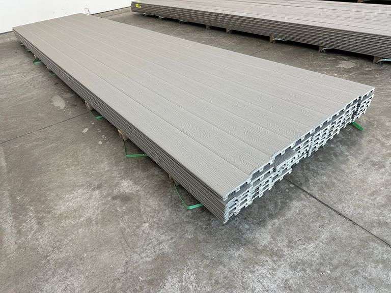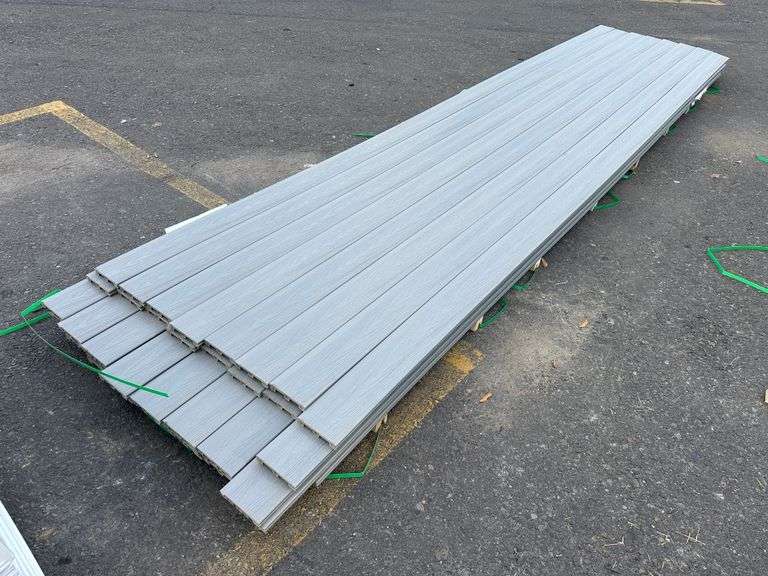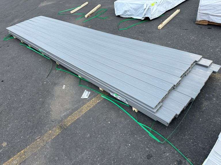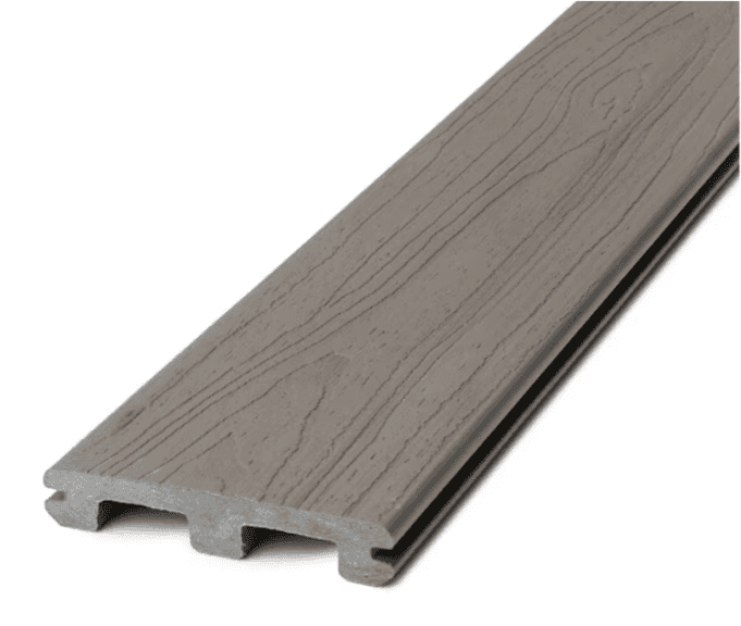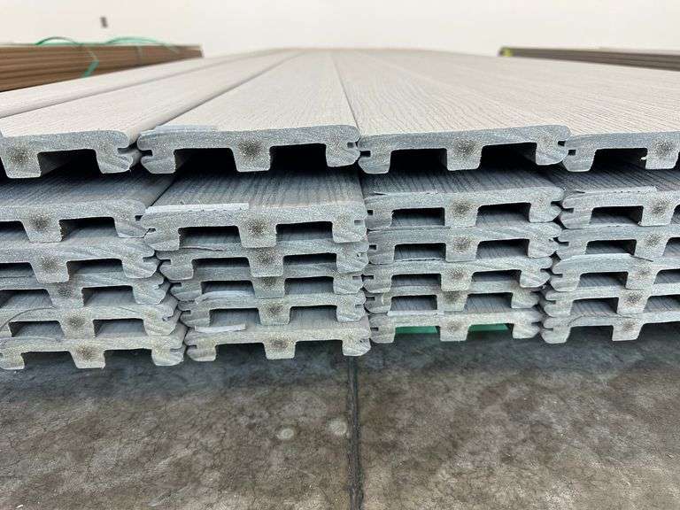 Gray Composite Decking 5/4"x6"x16'. By Deckorators, Actual Dimensions: 1"x5 1/2"x16', Scalloped Bottom, Grooved Edge, Grade: B Weight: X. Sold by: Linear Foot. Sold as: Price x Quantity.