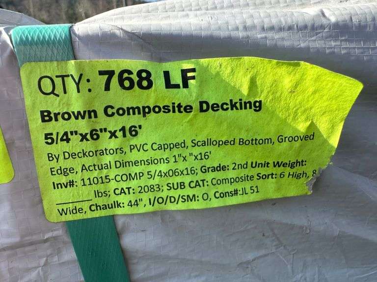 Brown Composite Decking 5/4"x6"x16'. By Deckorators, Actual Dimensions: 1"x5 1/2"x16', Scalloped Bottom, Grooved Edge, Grade: B Weight: X. Sold by: Linear Foot. Sold as: Price x Quantity.