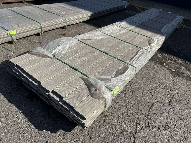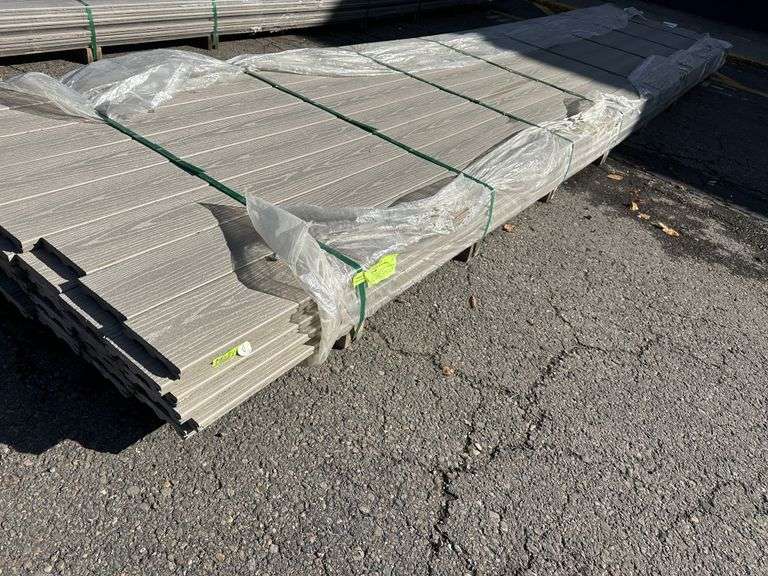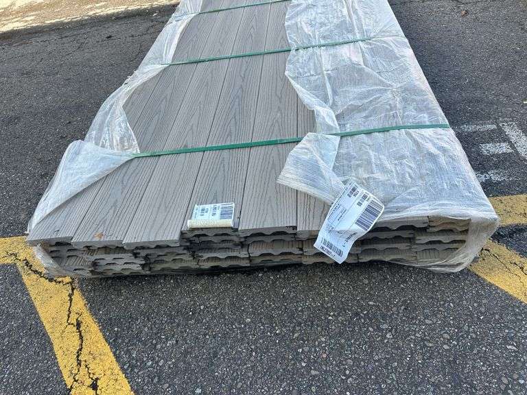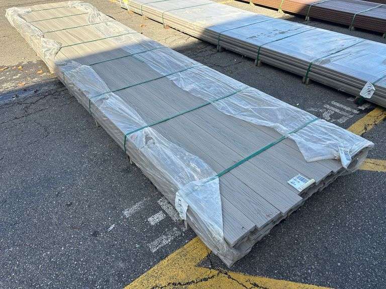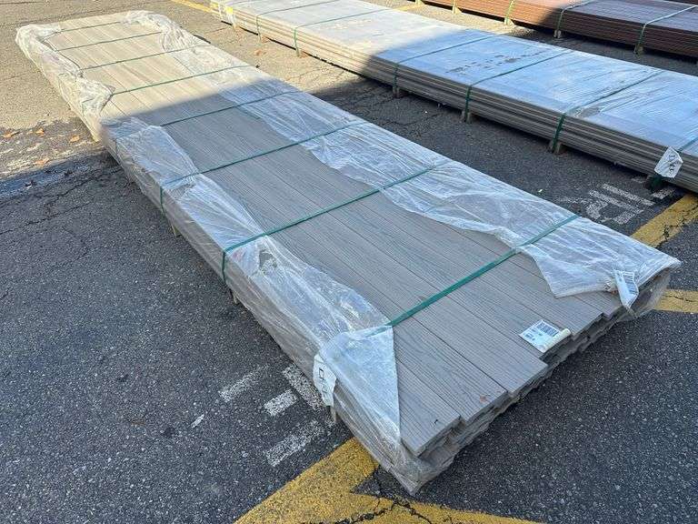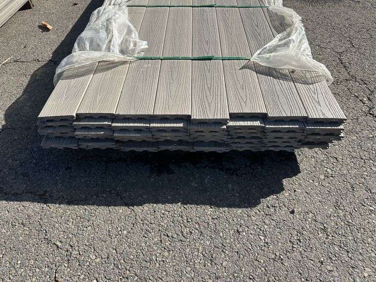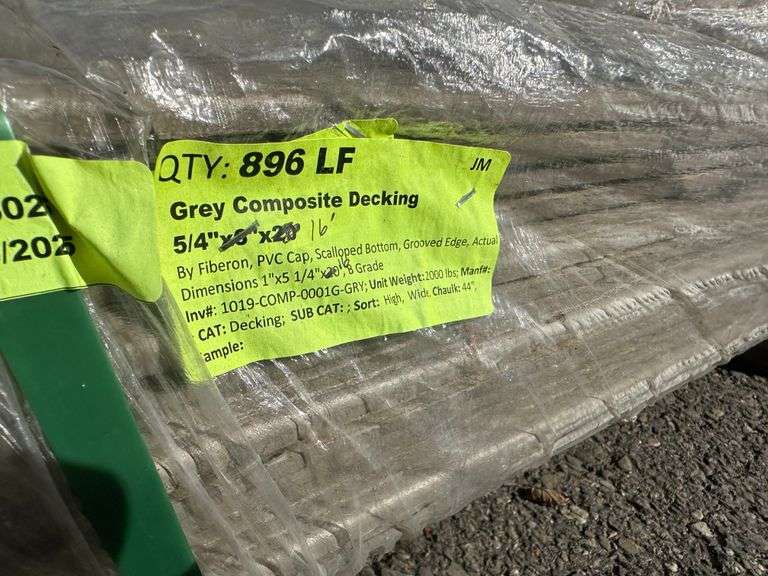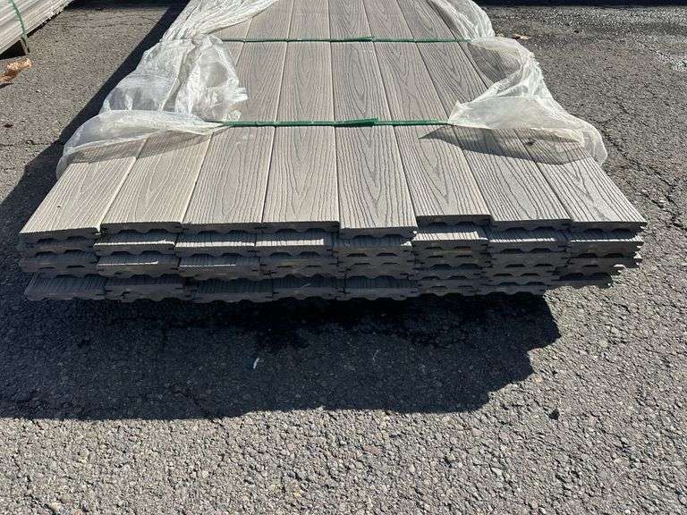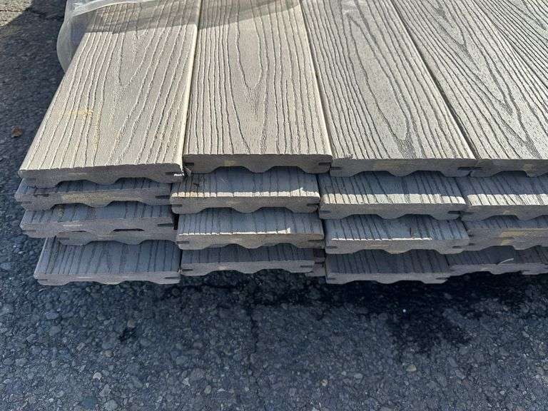 Grey Composite Decking 5/4"x6"x16'. By Fiberon, PVC Cap, Scalloped Bottom, Grooved Edge, Actual Dimensions 1"x5 1/4"x16', Grade: B Weight: 2000. Sold by: Linear Foot. Sold as: Price x Quantity.