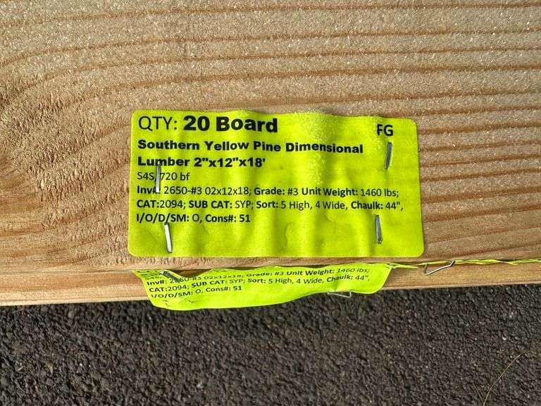 Southern Yellow Pine Dimensional Lumber 2"x12"x18'. S4S, 720 Board Foot, Grade: #3 Weight: 1460. Sold by: Board. Sold as: Price x Quantity.