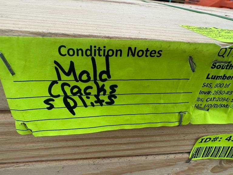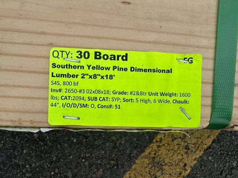 Southern Yellow Pine Dimensional Lumber 2"x8"x18'. S4S, 800 Board Foot, Grade: #2&btr,*Condition Notes: Mold, Splits/Cracks, Please See Photos* Weight: 1600. Sold by: Board. Sold as: Price x Quantity.