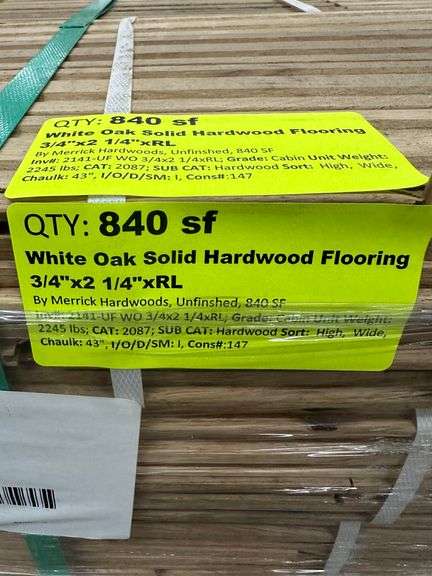 White Oak Solid Hardwood Flooring 3/4"x2 1/4"xRL. By Merrick Hardwoods, Unfinished, 840 SF, Grade: Cabin Weight: 2245. Sold by: Square Foot. Sold as: Price x Quantity.