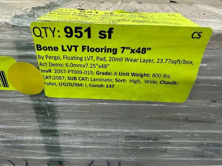 Bone LVT Flooring 7"x48". By Pergo, Floating LVT, Pad, 20mil Wear Layer, 23.77sqft/box, Act Dems: 6.0mmx7.25"x48", Grade: A Weight: 800. Sold by: Square Foot. Sold as: Price x Quantity.