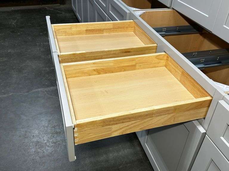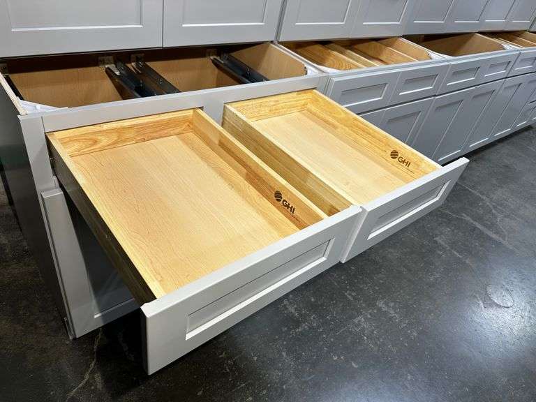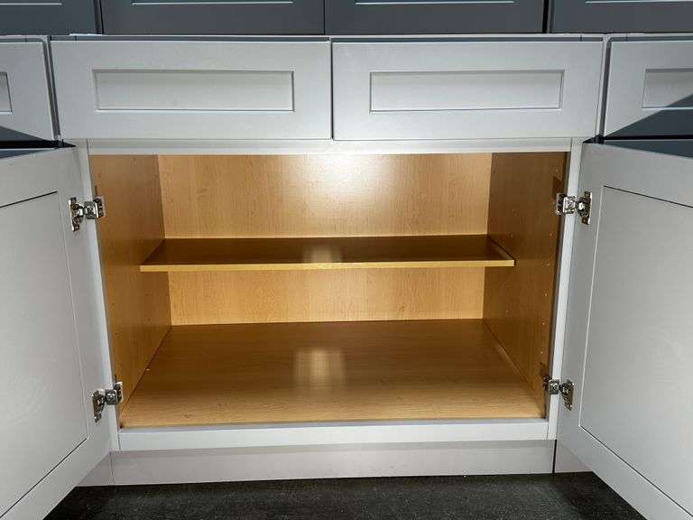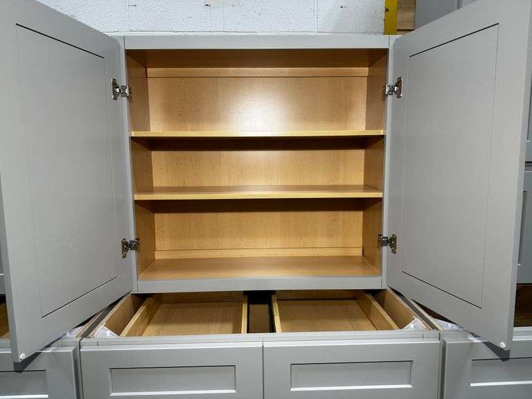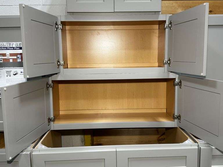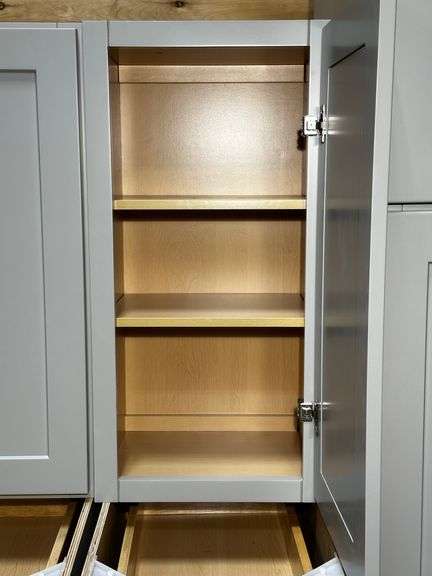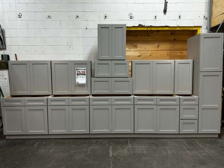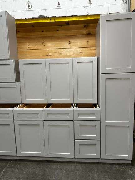 Stone Habor Gray Kitchen Cabinet Set 22'. Classic Layout, 30" Walls, By GHI, Additional pieces may be available for order to the high bidder. Additional cabinets ship boxed, ready to assemble. -3/4” Solid Wood Face Frame -High Density Fiberboard Shaker Style Door and Drawer Front -1/2” Plywood Box Construction -5/8” Plywood Shelves -Full Overlay Doors and Drawer Fronts -Solid Wood Dovetail Drawer box -Soft Close Full Extension Drawer Gliders -Soft Close Doors -6-Way Adjustable Concealed Hinges -Additional Wall Cabinets Available in the Following Sizes; 30”, 36”, and 42”; if you would like a different size that what this cabinet is listed as please call our office at 607-865-6951 for a quote. Enclosed in each cabinet set will be a Build Sheet which lists the individual cabinets in each set. As the cabinets are palletized each cabinet will be checked off and signed by our staff member to ensure that the set is complete at the time of pick-up. Please keep this Build Sheet on hand because it will be required if there is an issue with your cabinet set. Cabinet issues will not be addressed without this build sheet. Weight: x. Sold by: Set. Sold as: Price x Quantity.