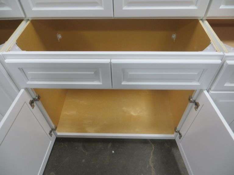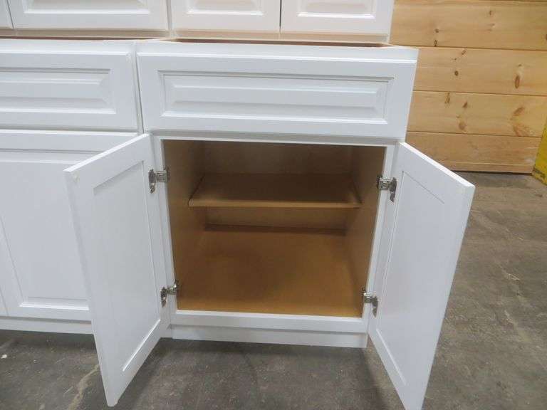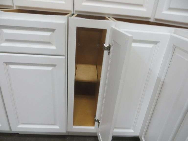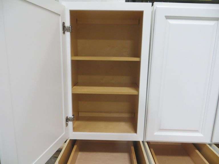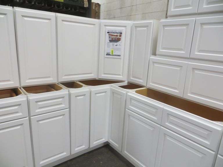 Newport White Kitchen Cabinet Set 10'x12'. Standard Layout, 30" Walls, By GHI, Additional pieces may be available for order to the high bidder. Additional cabinets ship boxed, ready to assemble. -3/4” Solid Wood Face Frame -3/4" HDF 5-pcs Door & Drawer Front -Full Overlay and 1/2" raised Panel -1/2” Plywood Box Construction -3/4” Plywood Shelves -Natural Interior -6-Way Adjustable Concealed Soft Close Door Hinges -5 Piece Drawer Front -5/8” Thick Solid Wood Dovetail Drawer Box -Undermount Full Extension Soft Close Drawer Glides. Cabinet Assembly Option is NOT Available on this kitchen cabinet set, it IS NOT assembled. This set will be unassembled and there are no assembly options. Enclosed in each cabinet set will be a Build Sheet which lists the individual cabinets in each set. As the cabinets are palletized each cabinet will be checked off and signed by our staff member to ensure that the set is complete at the time of pick-up. Please keep this Build Sheet on hand because it will be required if there is an issue with your cabinet set. Cabinet issues will not be addressed without this build sheet. Weight: x. Sold by: Set. Sold as: Price x Quantity.
