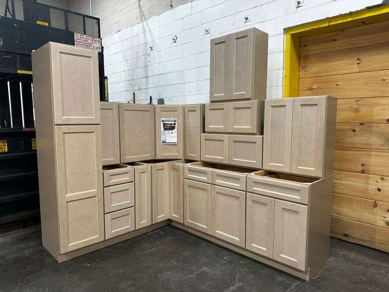 Sonona Wheat Kitchen Cabinet Set 10'x12'. Classic Layout, 30" Walls, By GHI, Designed for superior durability and functionality, these cabinets feature solid hardwood face frames with mortise and tenon construction, reinforced with glue and nails for exceptional stability. Thick multi-ply hardwood plywood tops, bottoms, and end panels are precisely added into the face frame, ensuring a secure and seamless fit. The adjustable shelves, crafted from edge-banded multi-ply hardwood plywood, exceed industry standards, while the sturdy back panels are routed, glued, and nailed for enhanced durability. 6mm fluted metal shelf clips provide secure, adjustable shelving in 2-inch increments. The solid hardwood shaker-style doors are fitted with 110-degree full overlay concealed hinges, featuring soft-closing dampers for smooth, silent operation. Dovetail-constructed drawer boxes, made from solid hardwood with plywood bottoms, are paired with soft-closing undermount full-extension glides, ensuring effortless functionality. Wood base corner brackets and solid hardwood hanging strips further reinforce the structural integrity of these cabinets. Enclosed in each cabinet set will be a Build Sheet which lists the individual cabinets in each set. As the cabinets are palletized each cabinet will be checked off and signed by our staff member to ensure that the set is complete at the time of pick-up. Please keep this Build Sheet on hand because it will be required if there is an issue with your cabinet set. Cabinet issues will not be addressed without this build sheet. Weight: x. Sold by: Set. Sold as: Price x Quantity.