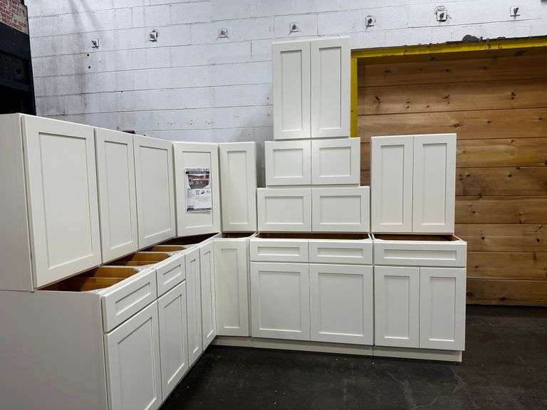 Arcadia Linen Kitchen Cabinet Set 10'x12'. Standard Layout, 30" Walls, By GHI, ADDITIONAL CABINETS ARE UNAVAILABLE BECAUSE THIS PRODUCT LINE IS DISCONTINUED. -3/4” Solid Wood Face Frame -High Density Fiberboard Shaker Style Door and Drawer Front -1/2” Plywood Box Construction -5/8” Plywood Shelves -Full Overlay Doors and Drawer Fronts -Solid Wood Dovetail Drawer box -Soft Close Full Extension Drawer Gliders -Soft Close Doors -6-Way Adjustable Concealed Hinges. Enclosed in each cabinet set will be a Build Sheet which lists the individual cabinets in each set. As the cabinets are palletized each cabinet will be checked off and signed by our staff member to ensure that the set is complete at the time of pick-up. Please keep this Build Sheet on hand because it will be required if there is an issue with your cabinet set. Cabinet issues will not be addressed without this build sheet. Weight: x. Sold by: Set. Sold as: Price x Quantity.