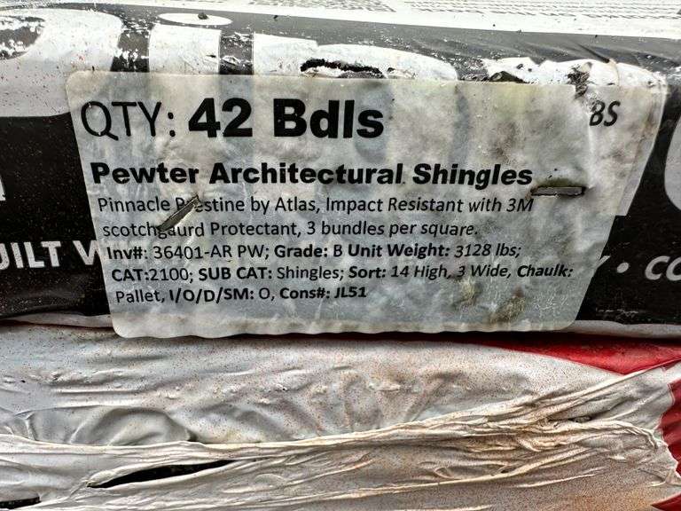 Pewter Architectural Shingles. Pinnacle Pristine By Atlas, Impact Resistant with 3M Scotchgard Protectant, Grade: B Weight: 3128. Sold by: Bundle. Sold as: Price x Quantity.