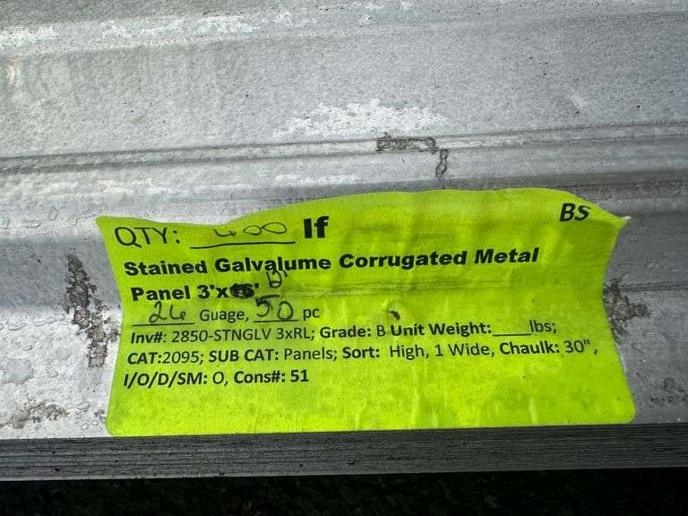 Stained Finish Galvalume Corrugated Metal Panel 3'x12'. 26 Gauge, 50 Pieces, Grade: B Weight: x. Sold by: Linear Foot. Sold as: Price x Quantity.