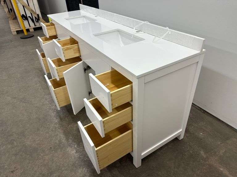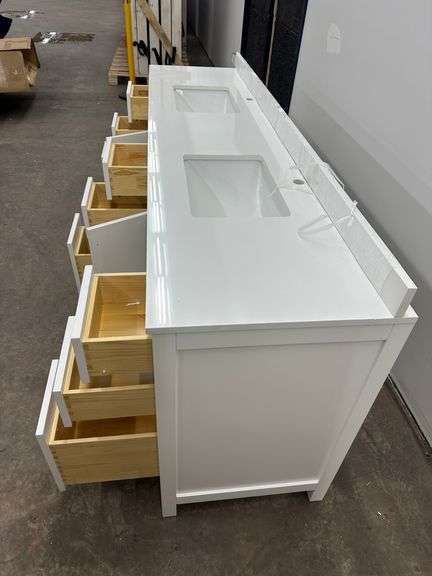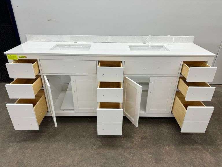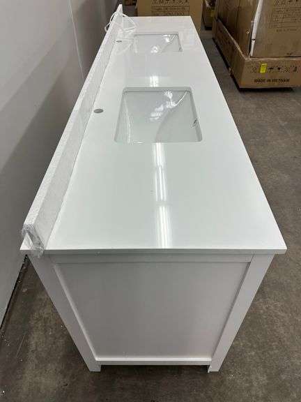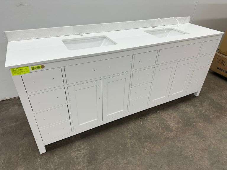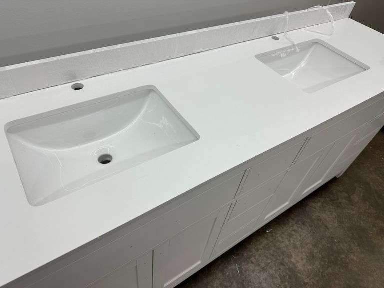 Strada White 84" Double Vanity. Windham Collection, With Cultured Marble, Top Actual Dimensions: 84"x21.5"x33", Does Not Include Hardware, Grade: A Weight: 500. Sold by: Piece. Sold as: Price x Quantity.