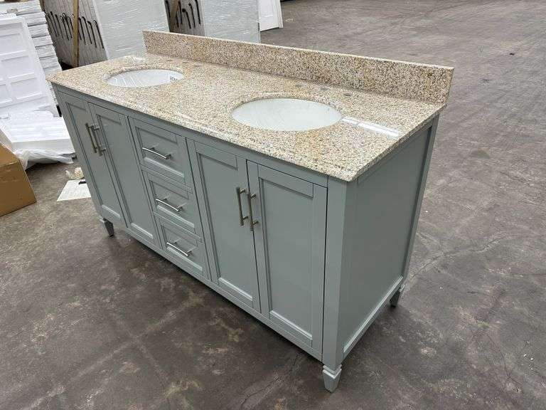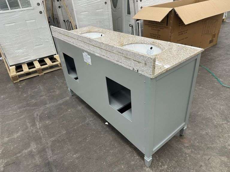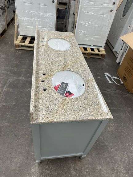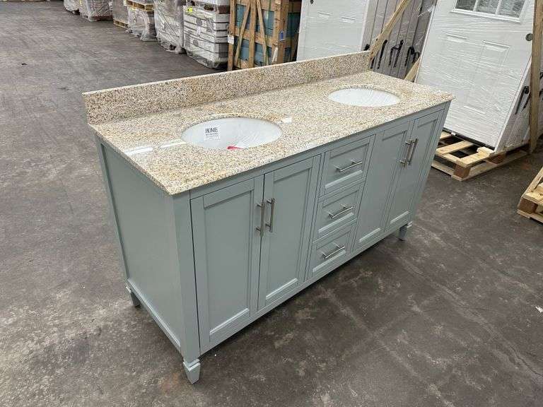 Stockham Chilled Gray 60"x21"x34" Double Basin Vanity. By Home Decorators Collection, Granite Vanity Top Included Actual Dimensions 60"x21 1/2"x34", Grade: 1st Quality Weight: 355. Sold by: Piece. Sold as: Price x Quantity.