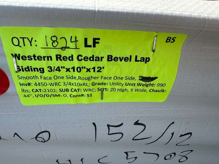 Western Red Cedar Bevel Lap Siding 3/4"x10"x12'. Smooth Face One Side, Rougher Face One Side, Grade: Utility Weight: 990. Sold by: Linear Foot. Sold as: Price x Quantity.