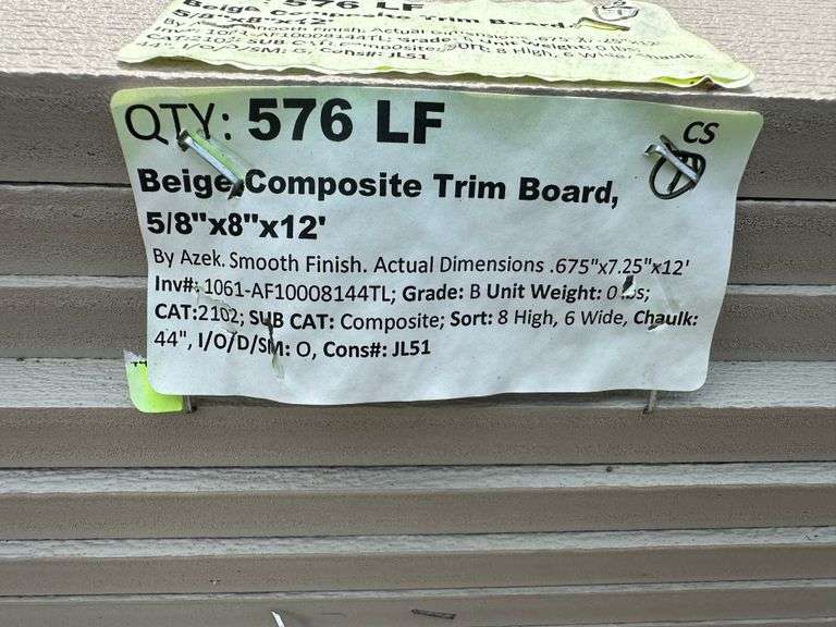 Beige Composite Trim Board 5/8"x8"x12'. By Azek, Smooth Finish, Actual Dimensions, 675"x7.25"x12', Grade: B Weight: 800. Sold by: Linear Foot. Sold as: Price x Quantity.